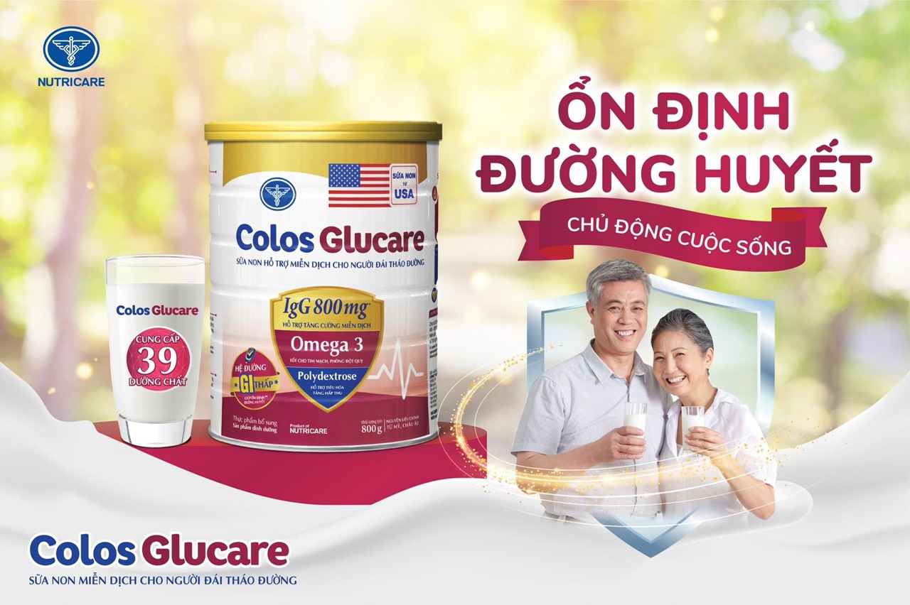 Theo đó, sản phẩm sữa bột Colos Glucare của công ty Nutricare có thể đáp ứng đầy đủ các yêu cầu và tiêu chuẩn nói trên. Sử dụng hệ đường tiên tiến (Palatinose, Isomalt, Maltitol) có chỉ số đường huyết thấp cùng Crôm được Cơ quan An toàn thực phẩm Châu Âu chứng nhận kiểm soát đường huyết sau uống, Colos Glucare hỗ trợ ổn định chỉ số đường huyết cho người đái tháo đường. Ngoài ra, sản phẩm cũng bổ sung 39 dưỡng chất cho người đái tháo đường, giúp cơ thể khỏe mạnh. Chưa hết, trong sữa còn có sữa non từ Mỹ chứa kháng thể IgG 800mg, cùng Vitamin C, kẽm giúp tăng cường sức đề kháng. Chất béo MUFA, PUFA cũng giúp hạn chế Cholesterol xấu, tốt cho sức khỏe tim mạch, cùng Omega 3 hỗ trợ phòng chống đột quỵ. Colos Glucare cũng bổ sung chất xơ (Polydextrose) giúp giảm táo bón, hấp thu dưỡng chất. Đặc biệt, sữa không chứa đường Lactose nên sẽ giảm tình trạng đầy bụng, rất phù hợp với người bất dung nạp loại đường này.