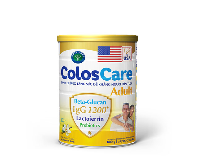 ColosCare Adult là sản phẩm dinh dưỡng giúp tăng cường sức đề kháng người lớn tuổi, giúp tăng cường sức khỏe, phòng chống lại các tác nhân xấu từ môi trường bên ngoài, cũng như sự suy giảm sức đề kháng do tuổi tác. Bạn nên duy trì đều 2 ly ColosCare Adult mỗi ngày để bảo vệ sức khỏe.