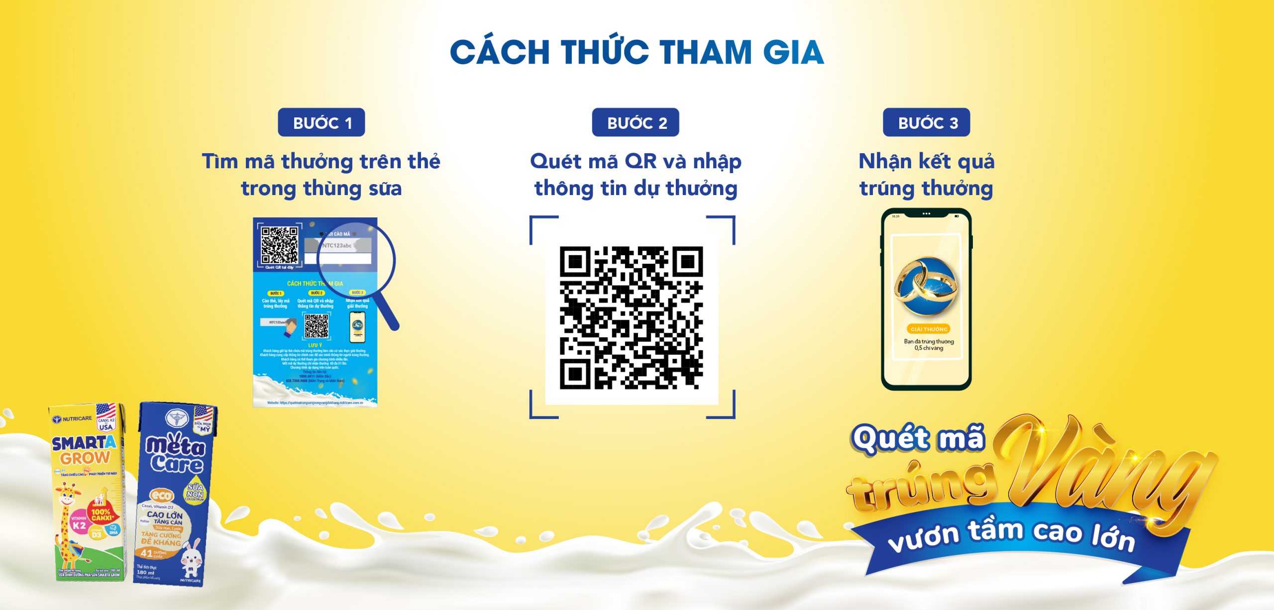 Nhận được sự đón nhận và hưởng ứng nồng nhiệt từ người tiêu dùng, Nutricare tiếp tục triển khai chương trình “Quét mã trúng vàng – Vươn tầm cao lớn” dành riêng cho các sản phẩm sữa pha sẵn Smarta Grow và Metacare.