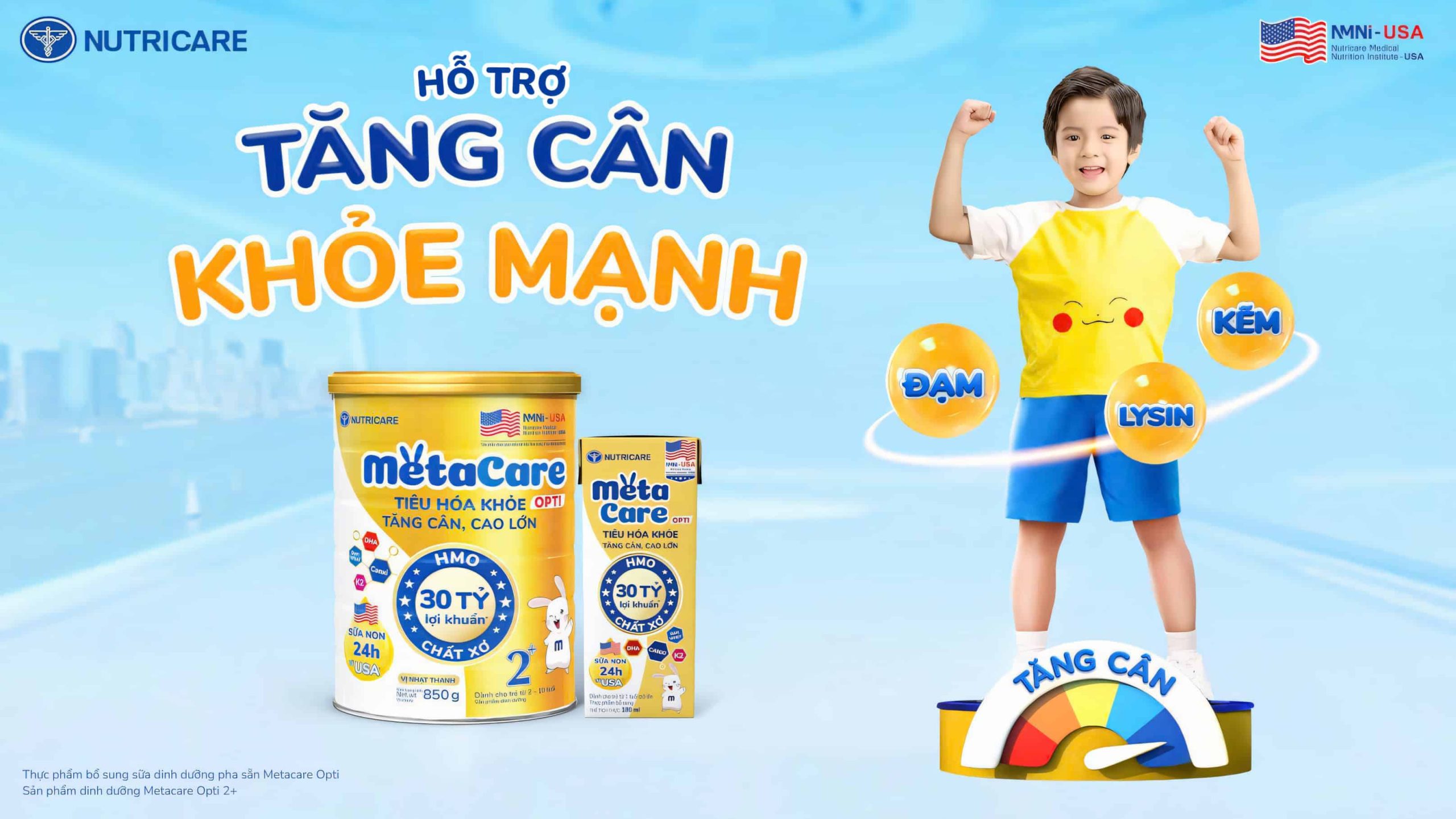 Metacare Opti, được nghiên cứu bởi Viện Dinh dưỡng Y học Nutricare Hoa Kỳ với công thức tiên tiến phù hợp với thể trạng trẻ em Việt Nam. Sản phẩm giúp cân bằng hệ vi sinh đường ruột, giảm táo bón, hỗ trợ tiêu hóa khỏe để bé hấp thu tốt hơn, từ đó tăng cân ổn định và phát triển chiều cao hiệu quả.