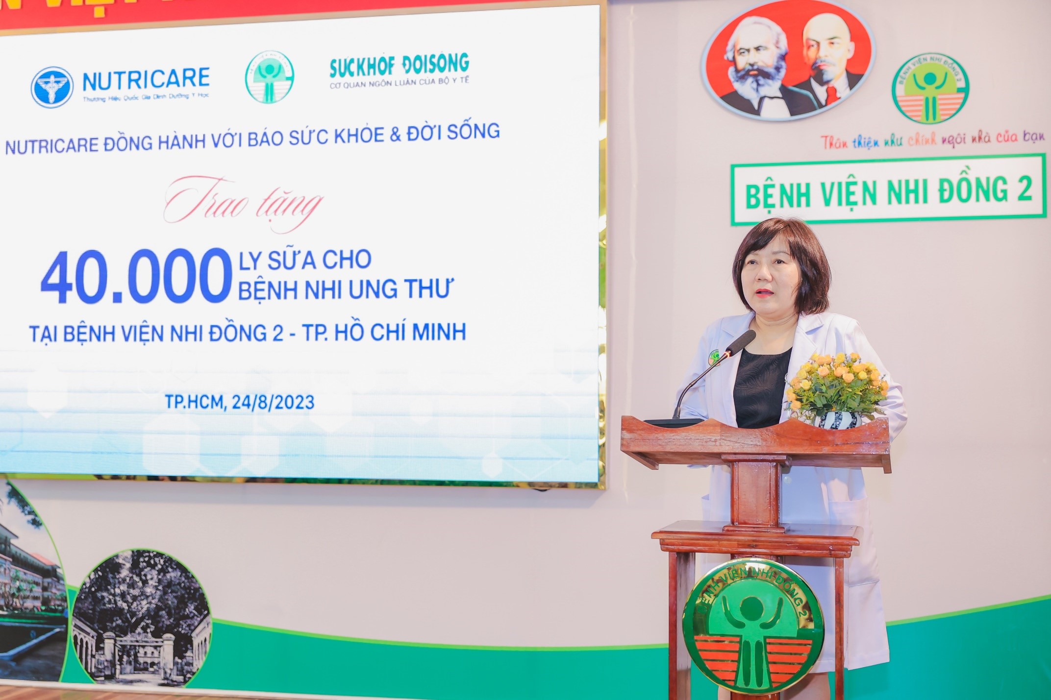 Cụ thể, sáng ngày 24/8/2023, công ty Nutricare cùng Báo Sức khỏe và Đời sống đã trao tặng 40.000 ly sữa cho các em nhỏ đang điều trị ung thư tại Bệnh viện Nhi đồng 2 – TPHCM. Trước đó, ngày 17/7/2023, 40.000 ly sữa Leanmax Hope cũng đã được trao tặng cho bệnh nhi ung thư tại Bệnh viện Nhi Trung ương – Hà Nội.