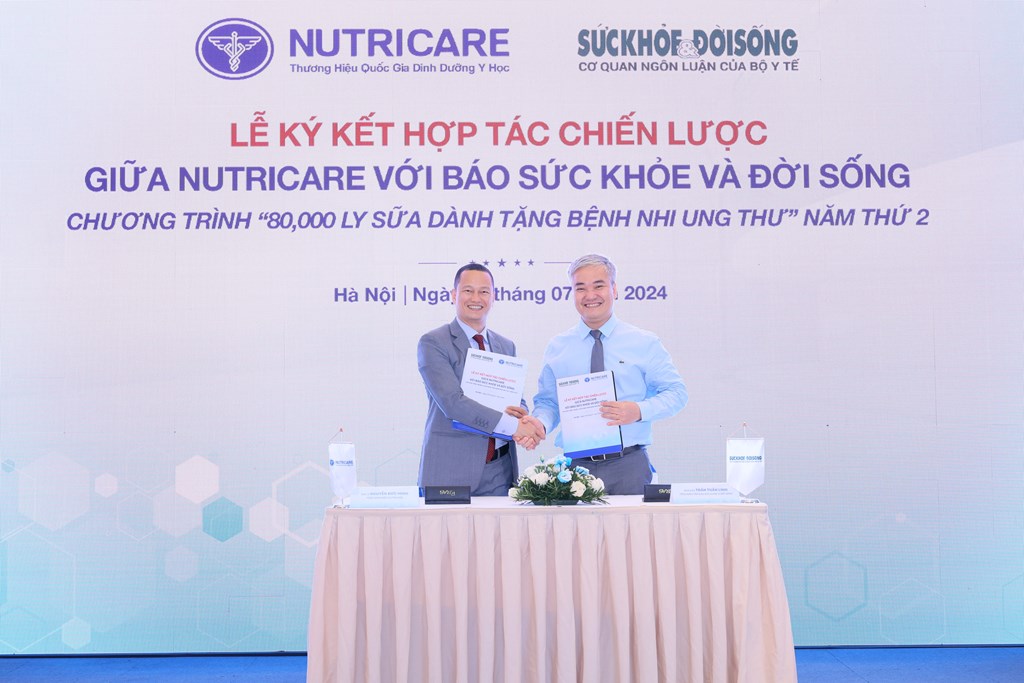 Cũng trong khuôn khổ buổi lễ, Nutricare cùng Báo Sức khỏe và Đời sống triển khai chương trình hợp tác chiến lược “80,000 ly sữa dinh dưỡng dành tặng bệnh nhi ung thư” năm thứ 2.