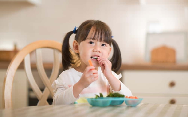 - 4 – 6 tuổi: Tốc độ tăng trưởng ở gia đoạn này tương đối ổn định. Mẹ cần chú ý đa dạng hóa thực đơn, khuyến khích bé uống 2 – 3 ly sữa mỗi ngày và tăng cường các loại rau củ, trái cây để bổ sung Vitamin.