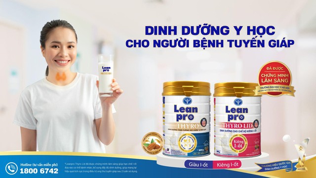 Trong đó, Leanpro Thyro là sản phẩm dinh dưỡng giàu I-ốt dành cho người sau phẫu thuật tuyến giáp, sau điều trị I-ốt phóng xạ và suy giáp.