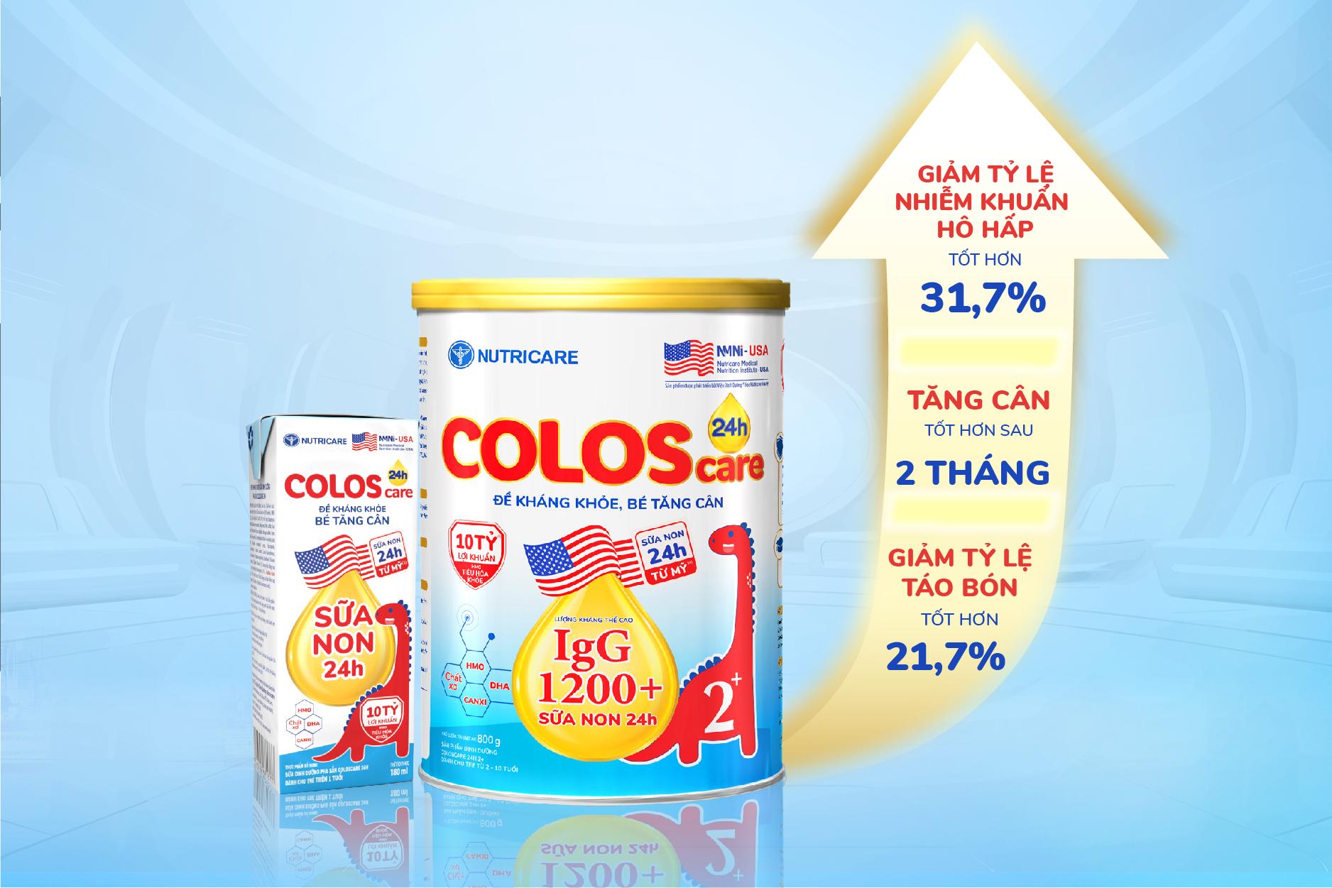 ColosCare 24h 2+ is a specialized nutritional product, specially formulated for children with low resistance, frequent illness, and slow weight gain. The product has been clinically proven to be suitable for the needs and physical condition of Vietnamese children in both powdered milk and ready-to-drink milk.