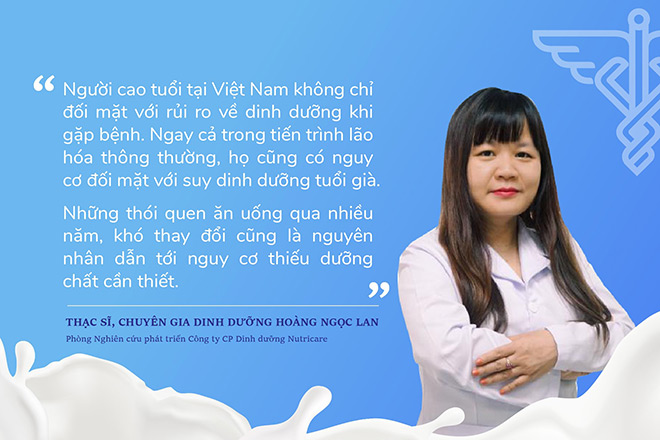 “Elderly people in Vietnam not only face nutritional risks when they get sick, but even in the aging process, they are also at risk of old age malnutrition. Eating habits that are difficult to change are also the cause of a lack of essential nutrients.” – M.A, Nutritionist, Hoang Ngoc Lan