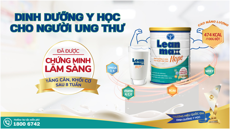 Leanmax Hope is a product recognized by the Ministry of Industry and Trade as the National Medical Nutrition Brand in 2018