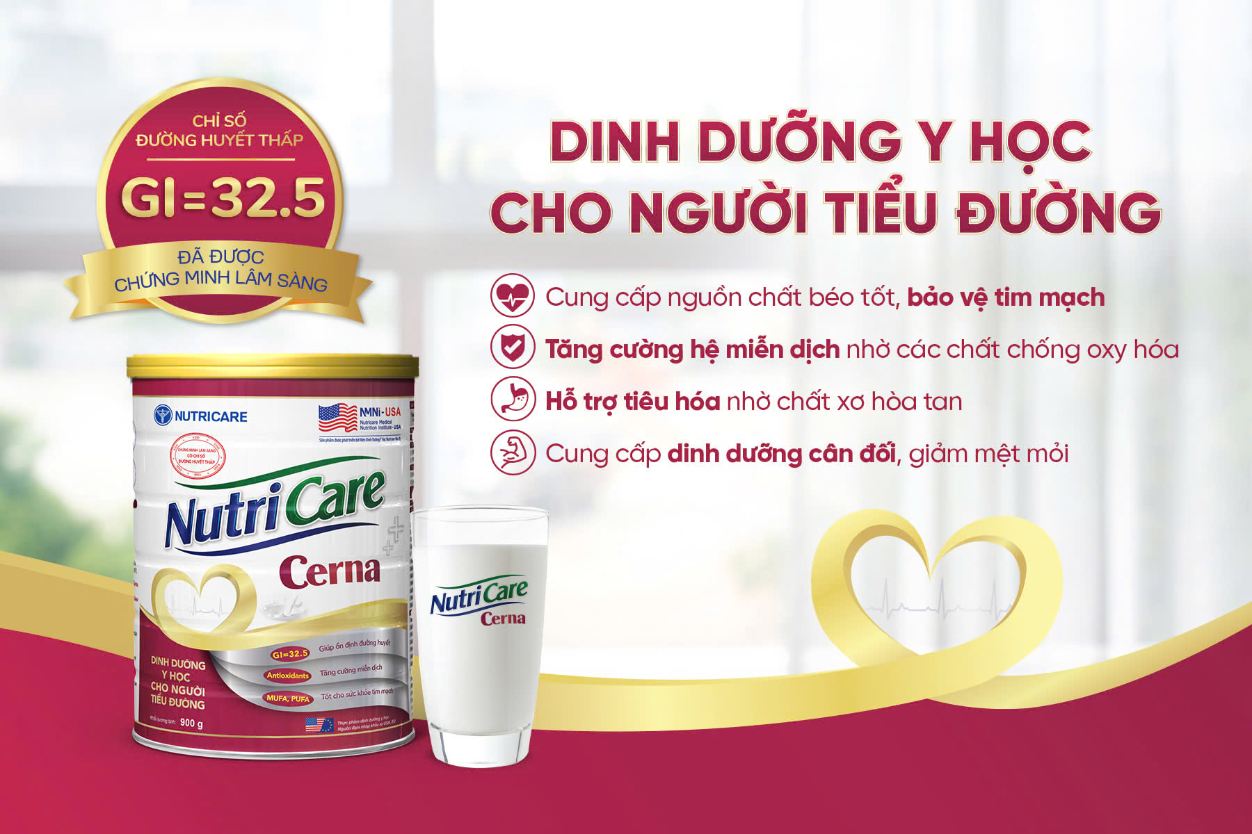 With a nutritional formula researched by experts, Nutricare Cerna is the ideal companion for diabetics, helping to maintain stable blood sugar, protect the heart, and strengthen the immune system, thereby giving patients fully enjoyable life.