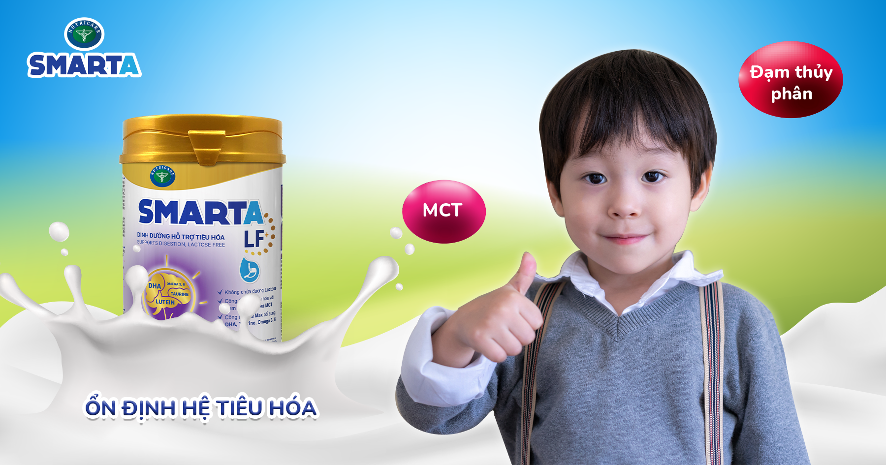 Từ đó, thành viên thứ ba trong gia đình – Smarta LF bổ sung men vi khuẩn (Lactobacillus, Bifidobacterrium) cùng hệ chất xơ giúp gia tăng vi khuẩn có lợi, giảm đầy bụng, táo bón. Sản phẩm không chứa đường Lactose, thích hợp cả với trẻ gặp phải trường hợp trên.