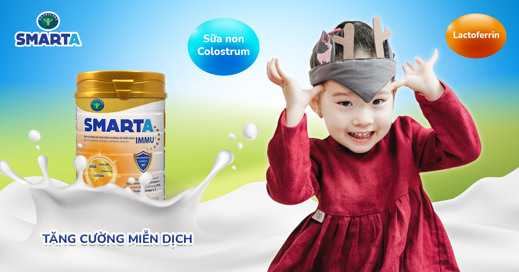 Trẻ từ 3-4 tuổi trở đi thì hệ thống miễn dịch mới hoàn thiện để sản xuất đầy đủ kháng thể chống lại các bệnh nhiễm trùng. Còn trước, được coi là giai đoạn “khoảng trống miễn dịch”, trẻ rất dễ mắc bệnh về đường hô hấp và tiêu hóa, dị ứng…Từ thực tế đó, Nutricare tiếp tục nghiên cứu và cho ra đời ra thành viên thứ tư: Smarta IMMU giúp hỗ trợ miễn dịch toàn diện nhờ bổ sung bộ đôi kháng thể Lactoferin và sữa non Colostrum hàm lượng cao, hỗ trợ trẻ tăng cường sức đề kháng.