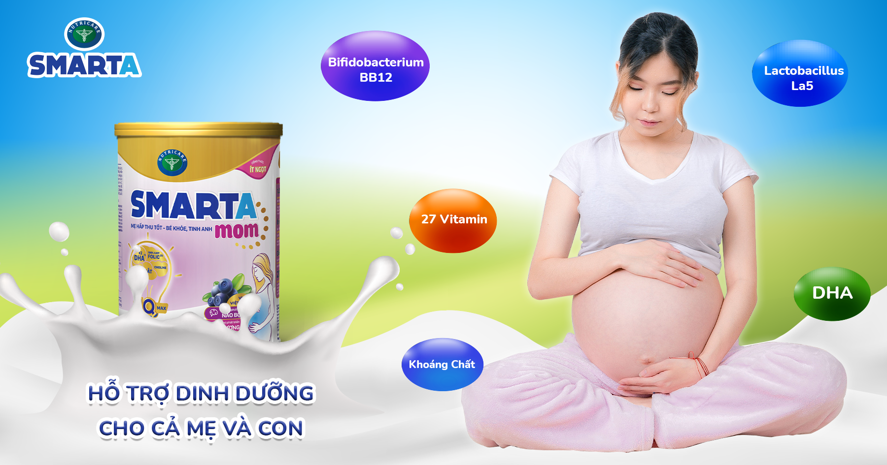 Smarta Mom giống như một “bác sĩ” riêng của mẹ trong gia đình, bổ sung lợi khuẩn Bifidobacterium BB12 và Lactobacillus LA5 hỗ trợ giảm tình trạng táo bón trong thai kỳ. Bên cạnh đó, đây còn là sản phẩm sữa công thức tối ưu cho bà mẹ mang thai, cung cấp đầy đủ 27 vitamin và khoáng chất nâng cao đề kháng, tăng cường sữa mẹ sau sinh. Đặc biệt Smarta Mom bổ sung các chất ăn kiêng giảm nguy cơ tiểu đường thai kỳ; cung cấp các DHA từ dầu cá tự nhiên, kết hợp cùng Cholin, Taurin, I-ốt, Omega 3, Omega 6 tăng cường trí thông minh của thai nhi.