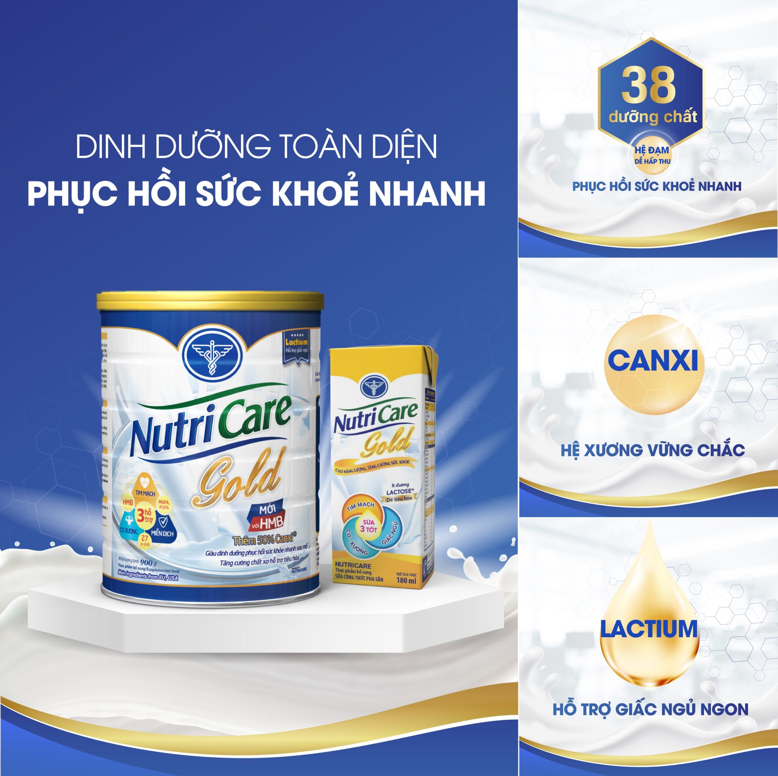Nutricare Gold – Công thức dinh dưỡng vượt trội với hệ đạm dễ hấp thu cùng 38 dưỡng chất bổ sung dinh dưỡng, phục hồi sức khỏe nhanh