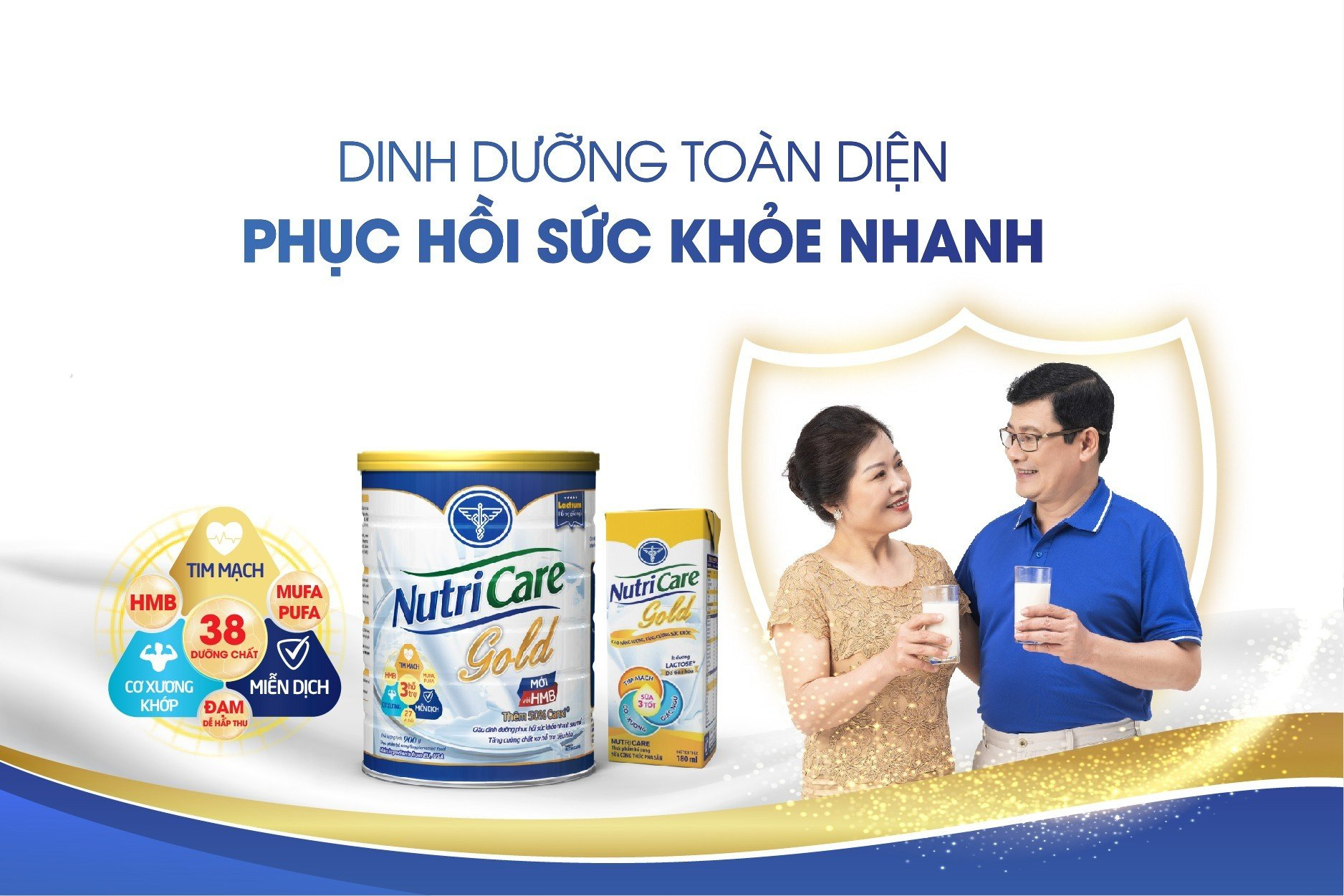 Nắm được những yếu tố quan trọng trên, qua nhiều năm nghiên cứu và phát triển bởi những bác sĩ, chuyên gia về dinh dưỡng và y học, Nutricare đã tạo nên dòng sữa Nutricare Gold với hệ đạm dễ hấp thu cùng 38 dưỡng chất giúp cải thiện và phục hồi sức khỏe nhanh chóng cho người lớn tuổi, đặc biệt với người ốm, người suy nhược cơ thể.