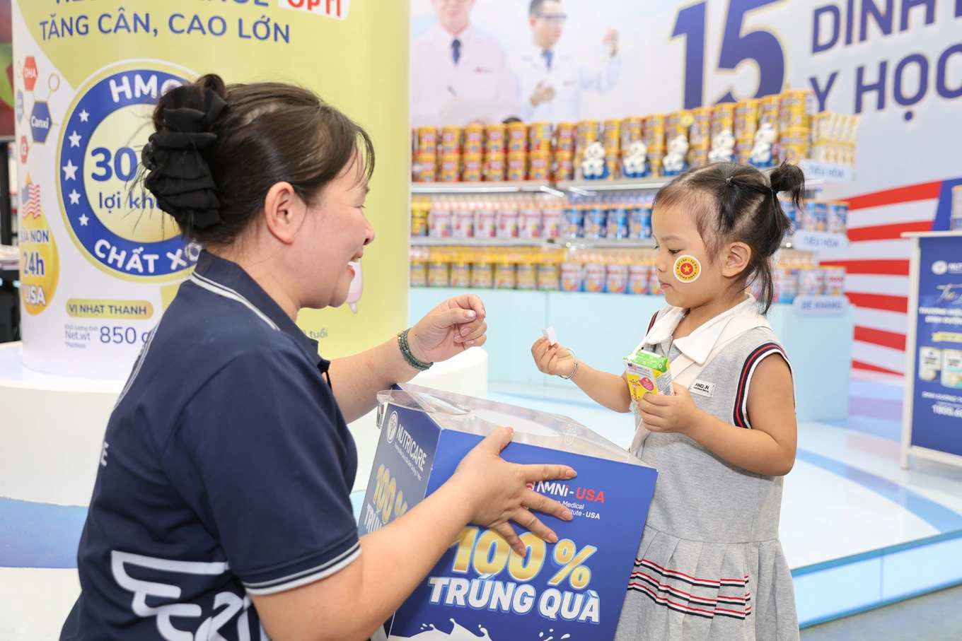 Điểm nhấn nổi bật của gian hàng Nutricare là sản phẩm dinh dưỡng Metacare Opti. Đây được coi thành tựu mang tính tiên phong do Nutricare và NMNI-USA nghiên cứu phát triển, với công nghệ đột phá 30 tỷ lợi khuẩn Postbiotic, hỗ trợ trẻ hệ tiêu hóa khỏe, tăng cân, cao lớn.