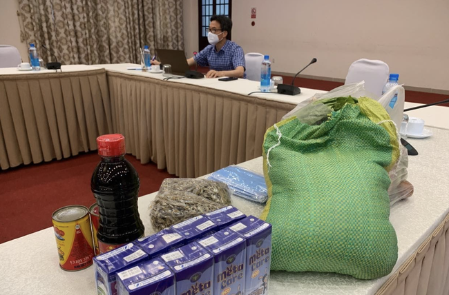 Thái Thùy Linh họp cùng PTT Vũ Đức Đam và lãnh đạo TPHCM, trên bàn là phần quà yêu thương 5T.