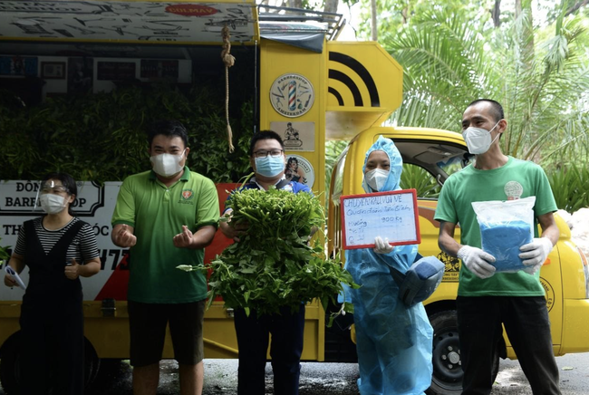 Nhóm tình nguyện viên “Người Việt thương nhau” tặng quà hỗ trợ bà con khó khăn vì dịch Covid-19.