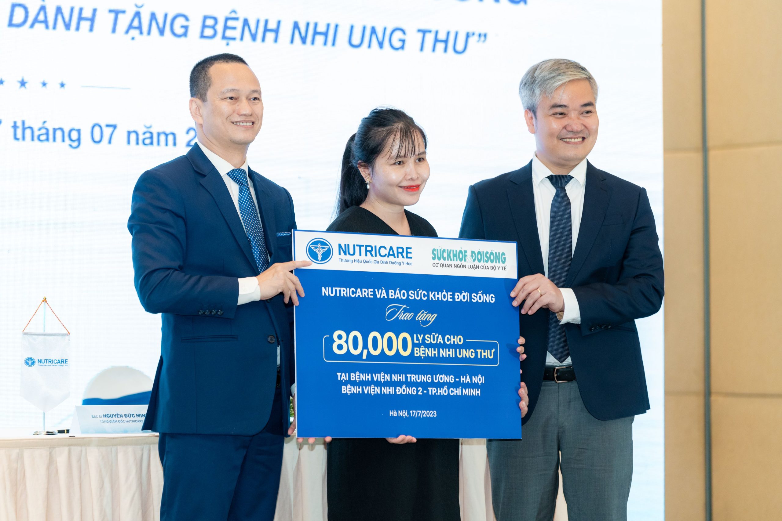 Nutricare trao sữa cho các bênh nhi ung thư nằm điều trị tại Bệnh viện Nhi đồng 2 (TP Hồ Chí Minh).