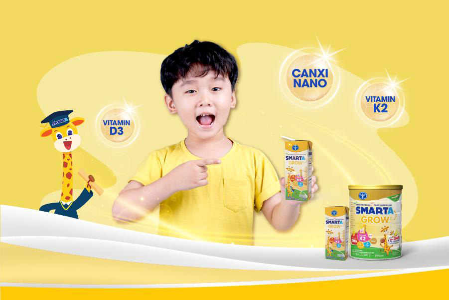 Sữa Smarta Grow+ bổ sung bộ ba Canxi Nano, Vitamin D3, Vitamin K2 chính là “tuyệt chiêu” của nhiều cha mẹ nhằm giúp con phát triển chiều cao tối ưu.
