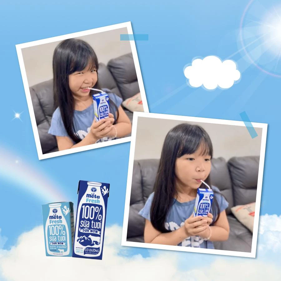 Trong clip chia sẻ, ba của Bối Bối còn bày tỏ sự yêu thích và yên tâm khi cho con gái uống Meta Fresh mỗi ngày vì sản phẩm này đạt tiêu chuẩn sữa sạch “3 không” – Không sử dụng hormone tăng trưởng cho bò, không dư lượng thuốc kháng sinh và không sử dụng chất bảo quản. Với quy trình sản xuất khép kín nghiêm ngặt theo tiêu chuẩn Châu Âu, sữa non tươi Meta Fresh hoàn toàn tự nhiên, giàu các dưỡng chất tốt cho sức khỏe và được đảm bảo an toàn về chất lượng.