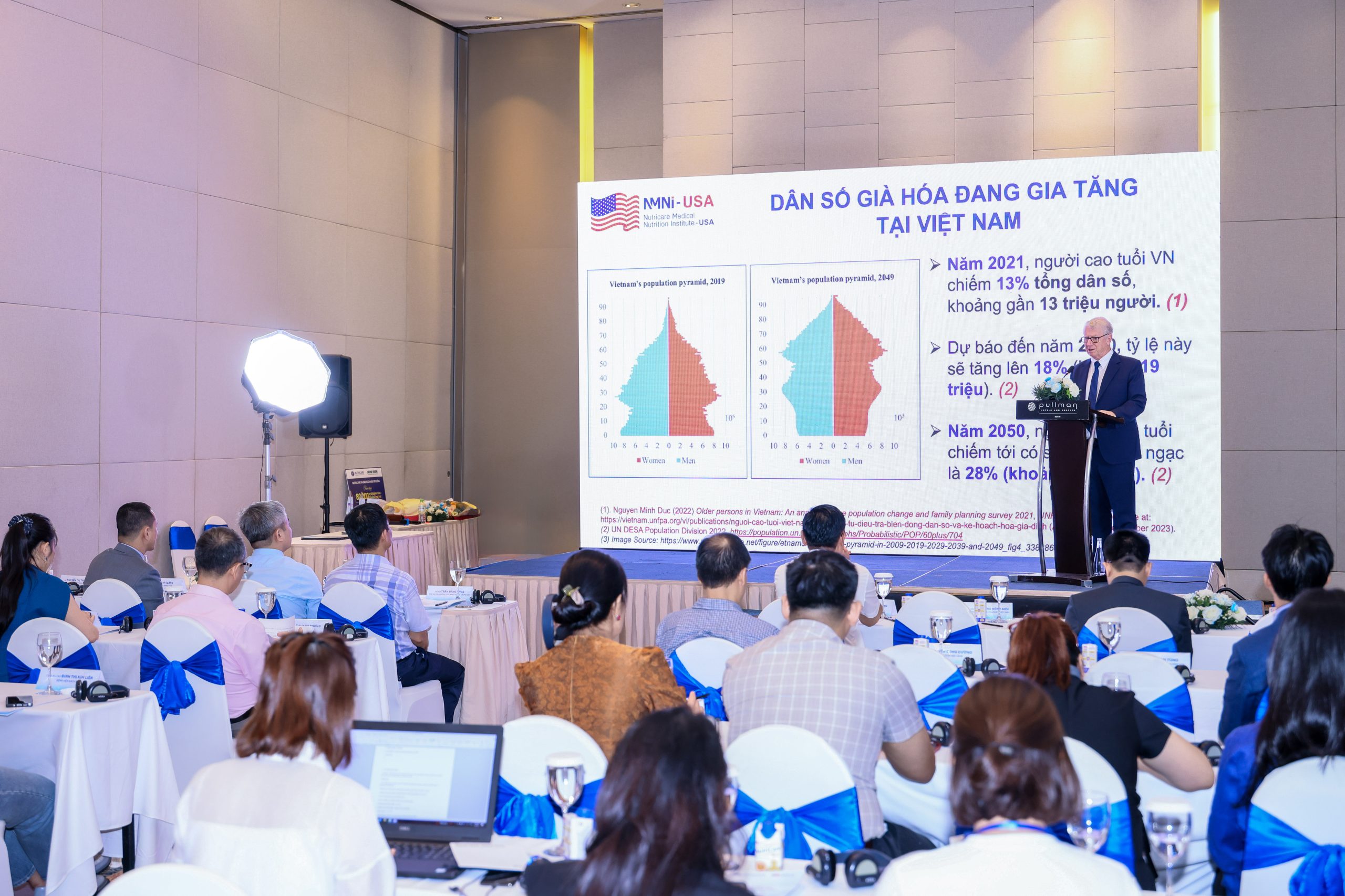 Tiến sĩ David Clark, Viện trưởng NMNI-USA công bố thành tựu hợp tác giai đoạn 2023 – 2024 và chia sẻ kế hoach hợp tác của Nutricare và NMNI-USA giai đoạn 2024-2025.