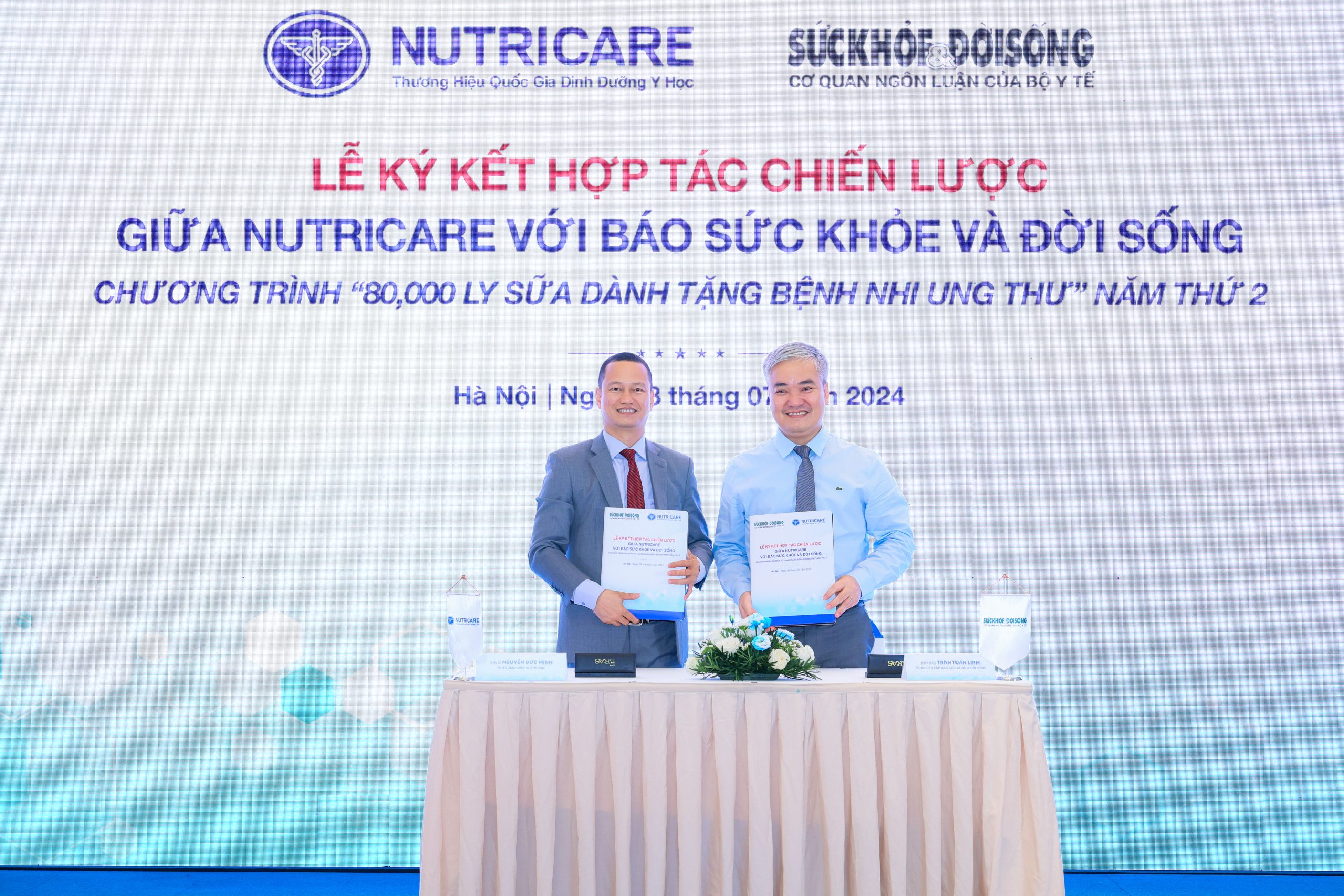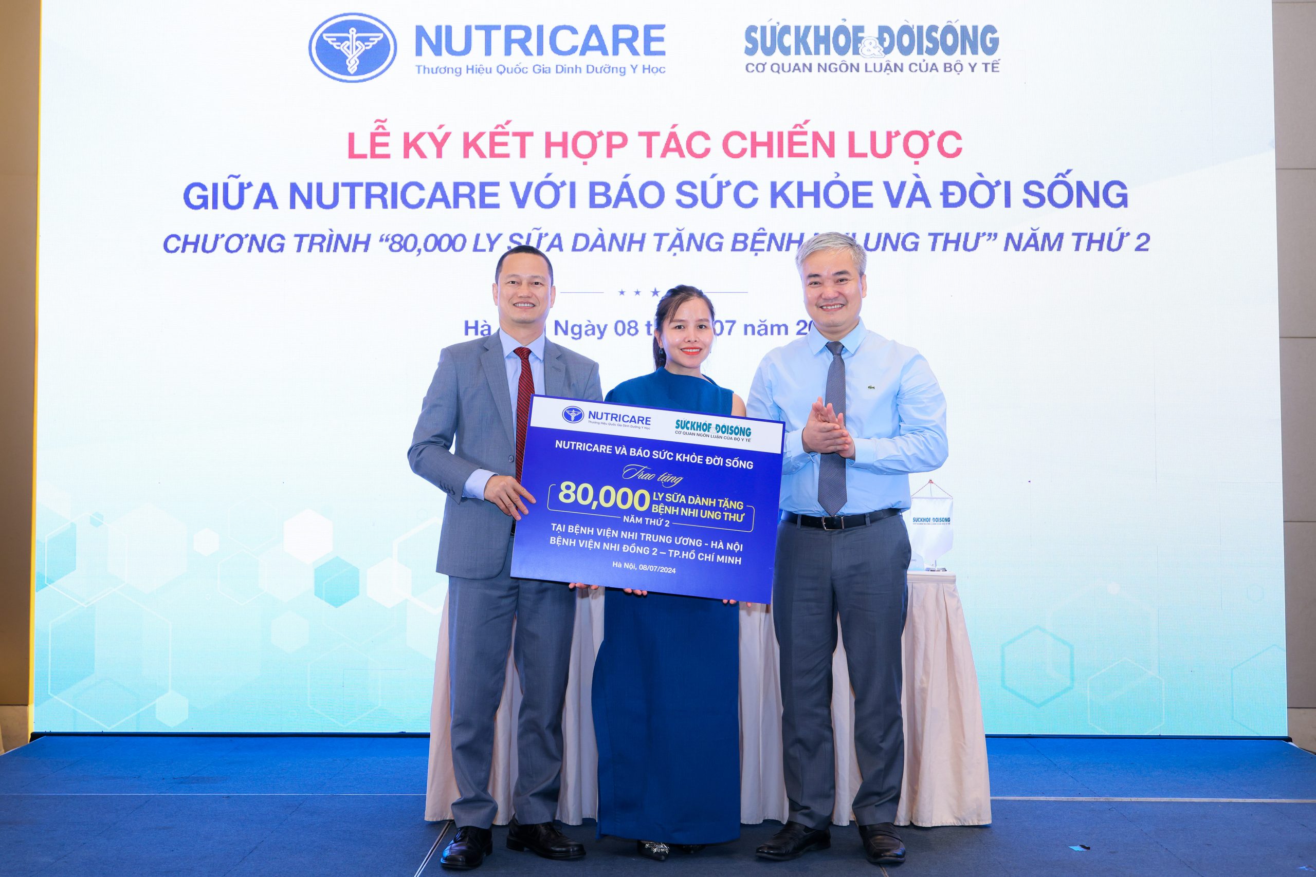 Cũng trong khuôn khổ buổi lễ, Nutricare cùng Báo Sức khỏe và Đời sống – Cơ quan ngôn luận của Bộ Y tế đã công bố chương trình hợp tác chiến lược 80,000 ly sữa dinh dưỡng dành tặng bệnh nhi ung thư” – năm thứ 2.
