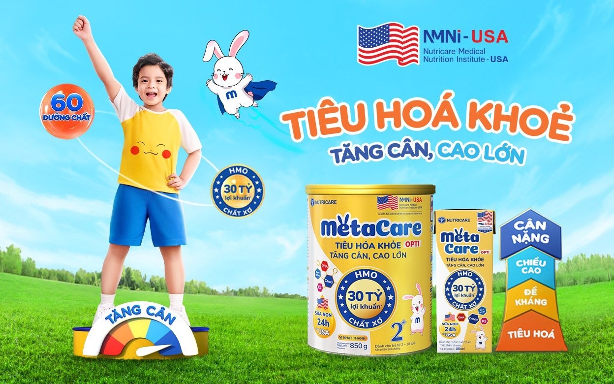 Là đơn vị tiên phong trong lĩnh vực Dinh dưỡng Y học tại Việt Nam, những năm qua, Nutricare đã nỗ lực nghiên cứu, phát triển công thức dinh dưỡng phù hợp với thể trạng người Việt. “Bằng việc hợp tác với Viện Dinh dưỡng Y học Nutricare Hoa Kỳ (NMNI-USA), Thương hiệu Quốc gia Dinh dưỡng Y học Nutricare một lần nữa khẳng định khát vọng và cam kết mang đến những giải pháp dinh dưỡng chất lượng vượt trội, đặc biệt chuẩn Hoa Kỳ, nhằm chăm sóc và nâng cao sức khỏe cho hàng triệu gia đình Việt.” – Bác sĩ Nguyễn Đức Minh – Tổng Giám đốc Nutricare chia sẻ. Ứng dụng các thành tựu khoa học tiên tiến trên thế giới, Viện Dinh dưỡng Y học Nutricare Hoa Kỳ nghiên cứu và phát triển thành công sản phẩm Sữa mát Metacare Opti đột phá với Công nghệ lợi khuẩn Postbiotic, bổ sung 30 tỷ lợi khuẩn Postbiotic (hệ lợi khuẩn Postbiotic LBiome và Postbiotic L. Lactis Plasma) giúp ức chế sự phát triển của vi khuẩn có hại, tăng cường hệ miễn dịch tự nhiên, cùng HMO và chất xơ giúp hệ tiêu hóa khỏe mạnh, ngăn ngừa táo bón và hỗ trợ cân bằng hệ vinh sinh đường ruột. Sữa non 24h từ Mỹ hỗ trợ tăng cường đề kháng cùng 60 dưỡng chất giúp trẻ tăng cân, cao lớn. |