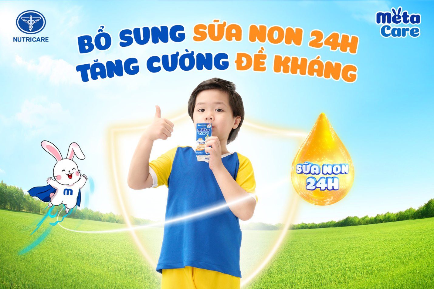 Sữa dinh dưỡng pha sẵn Metacare bổ sung sữa non 24h nhập khẩu từ Mỹ giàu kháng thể IgG, cùng Kẽm tạo nên “khiên đề kháng” giúp trẻ chống lại các tác nhân gây hại, tăng cường sức đề kháng. Bên cạnh đó, Metacare tăng cường 41 dưỡng chất hỗ trợ phát triển thể chất toàn diện cùng Protein và Năng lượng giúp trẻ tăng cân, đồng thời tỷ lệ Canxi/Phốt pho phù hợp theo khuyến nghị của Viện Dinh dưỡng Quốc gia cùng Vitamin D3 giúp hấp thụ Canxi vào xương, phát triển chiều cao vượt trội. Ngoài ra, Metacare còn cung cấp dưỡng chất Cholin, Omega 3, 6 giúp trẻ phát triển não bộ, Axit folic giúp tăng khả năng ghi nhớ và học hỏi của trẻ.