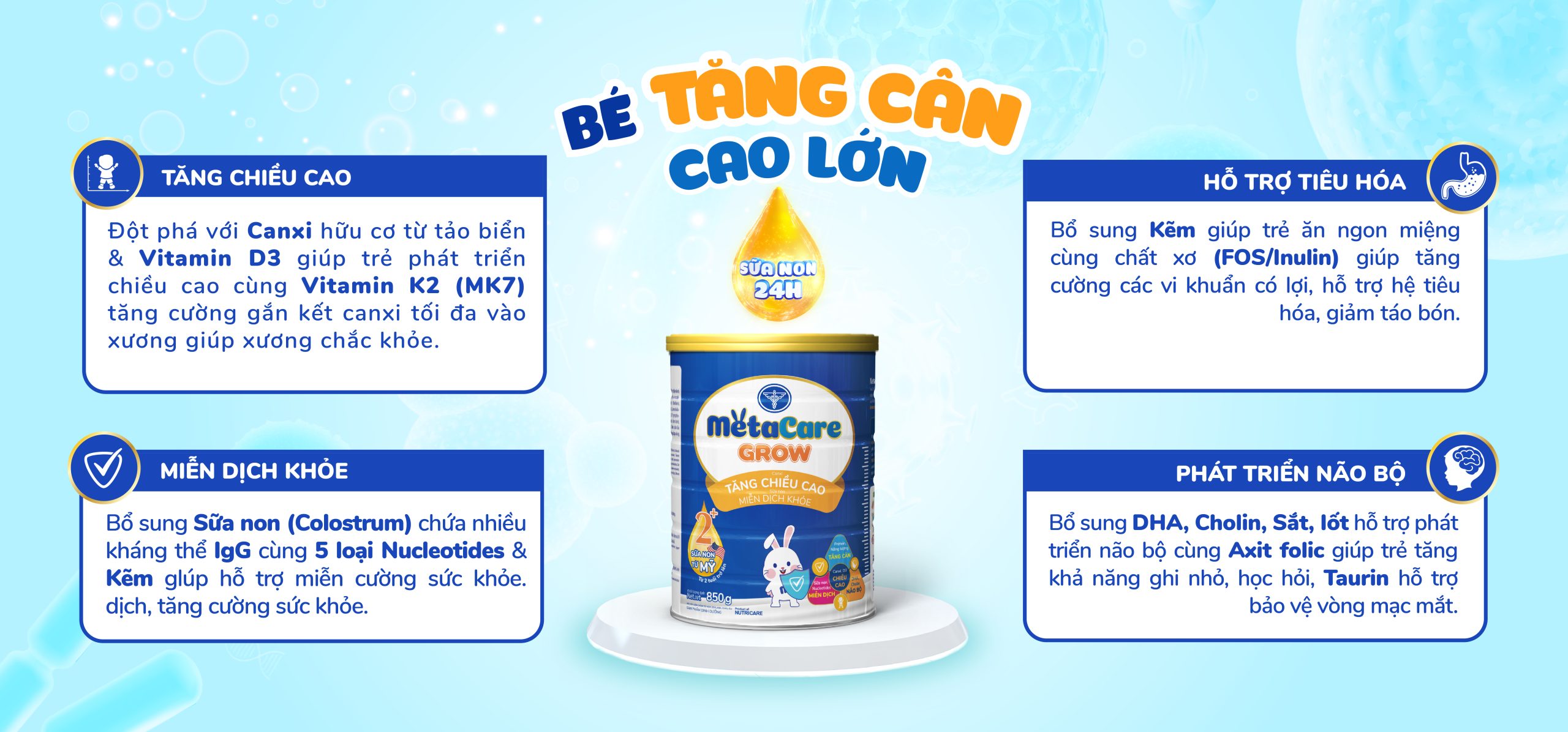 Bổ sung Sữa non giàu kháng thể IgG, cùng 5 loại Nucleotide và Kẽm, giúp tăng cường hệ miễn dịch, nâng cao sức đề kháng, bảo vệ cơ thể trước các tác nhân gây hại.