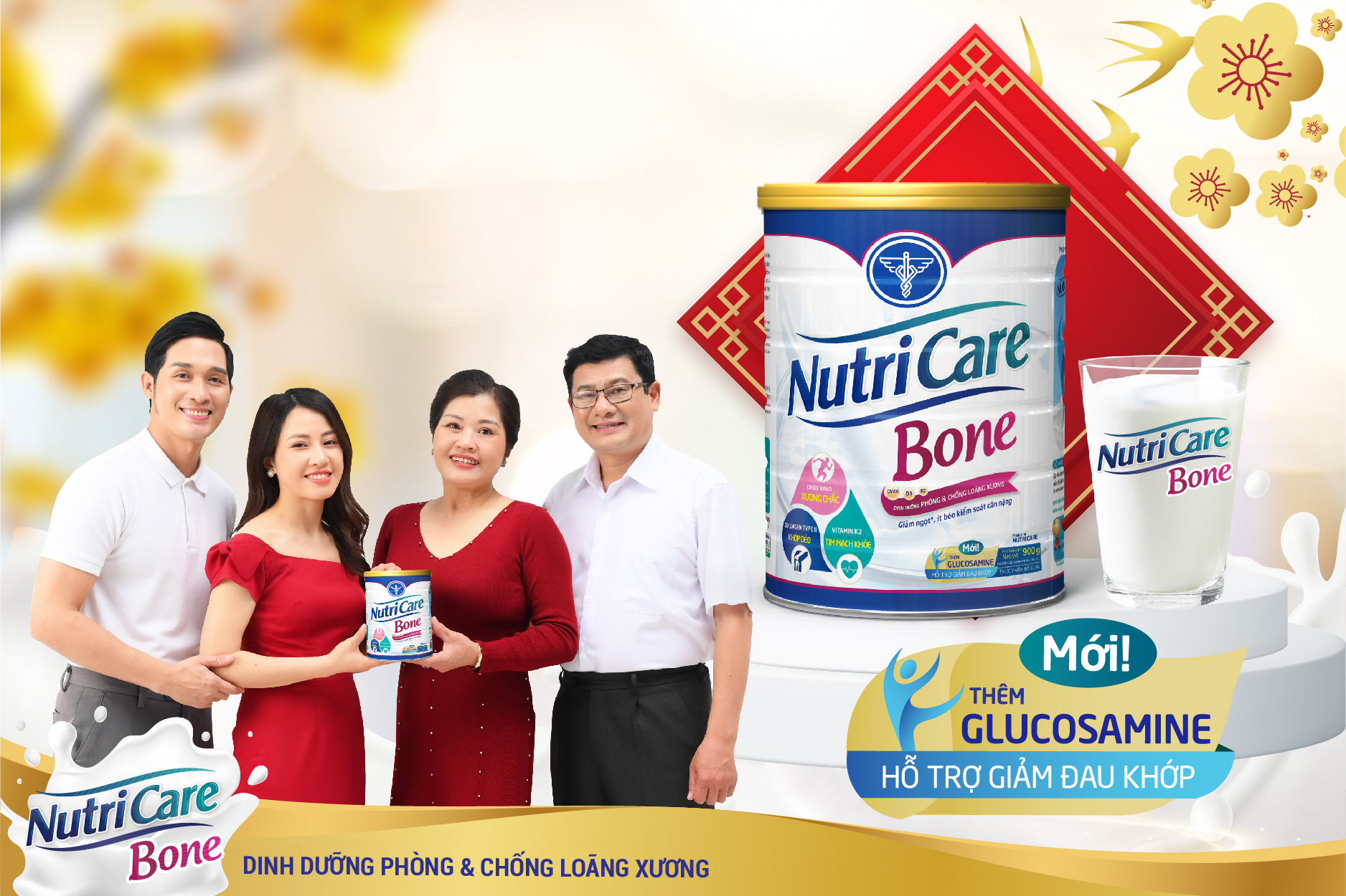 Nutricare Bone còn chứa Collagen type II thủy phân cùng Glucosamine giúp giảm đau khớp, tăng khả năng vận động, linh hoạt của sụn khớp. Vitamin K2-MK7 cùng chất béo MUFA, PUFA có trong Nutricare Bone giúp ngăn chặn tình trạng xơ vữa động mạch, tốt cho sức khỏe tim mạch. Bên cạnh đó, chất xơ hòa tan (FOS, Inulin) giúp tiêu hóa tốt, tăng hấp thu Canxi; sản phẩm giàu đạm kết hợp với 28 Vitamin và khoáng chất thiết yếu giúp cơ thể khỏe mạnh. Nutricare phù hợp với người bị loãng xương, có nguy cơ giảm mật độ xương, người chơi thể thao, hoạt động thể lực nặng cần hỗ trợ chức năng xương khớp, rất phù hợp để biếu tặng trong các dịp lễ Tết.