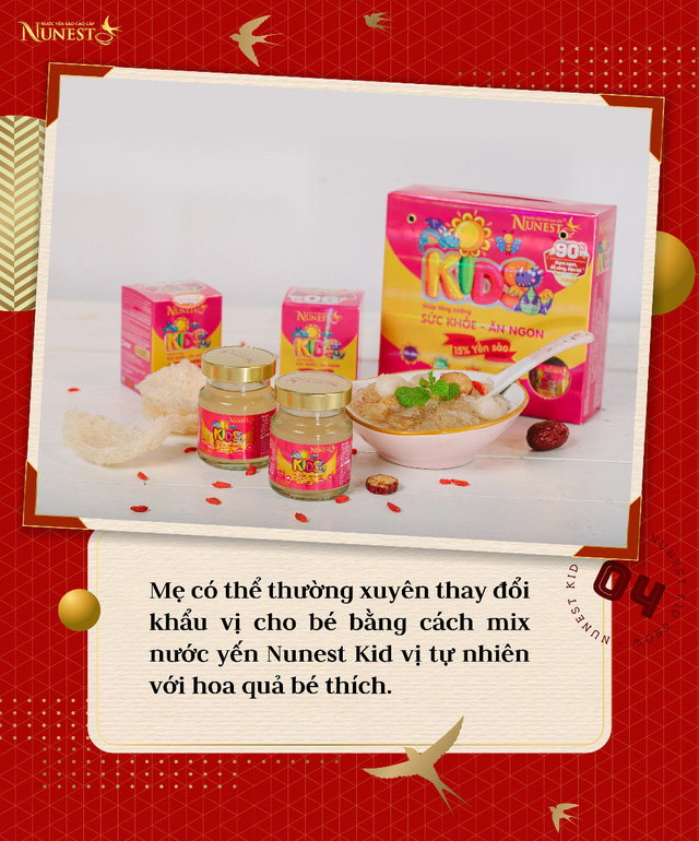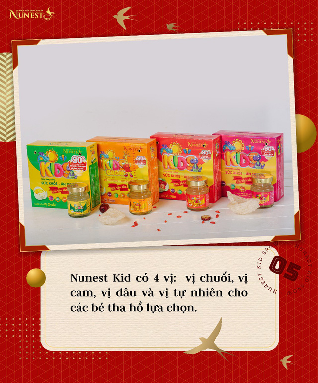 Trong khi các mẹ phải cực nhọc tìm đủ mọi cách để con hết biếng ăn, khỏe mạnh, cao lớn mỗi ngày thì vẫn có một giải pháp cực đơn giản nhưng rất giàu dinh dưỡng cho bé yêu từ Nunest Kid: bộ sản phẩm Nunest Kid vị hoa quả không chỉ giúp con ăn ngon hơn mà còn bổ sung nhiều dinh dưỡng để bé phát triển và khỏe mạnh mỗi ngày. Mẹ nào chưa biết thì hãy khám phá ngay hương vị thơm ngon mới lạ của yến sào kết hợp cùng vị trái cây và nhiều dưỡng chất có trong sản phẩm này nhé!