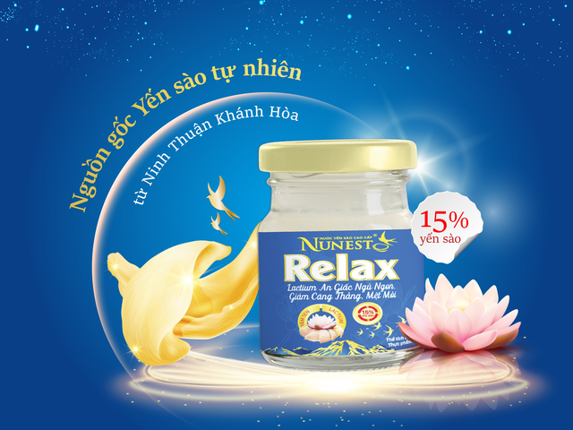 Và từ xa xưa, yến sào đã được lựa chọn như một thực phẩm dinh dưỡng giúp bồi bổ nâng cao sức khỏe tinh thần đặc biệt là giấc ngủ. Khai thác sức mạnh sẵn có có yến sào, Nunest ứng dụng thêm những nghiên cứu dinh dưỡng y học cho ra đời sản phẩm nước yến Nunest Relax giúp đi vào giấc ngủ ngon tự nhiên.