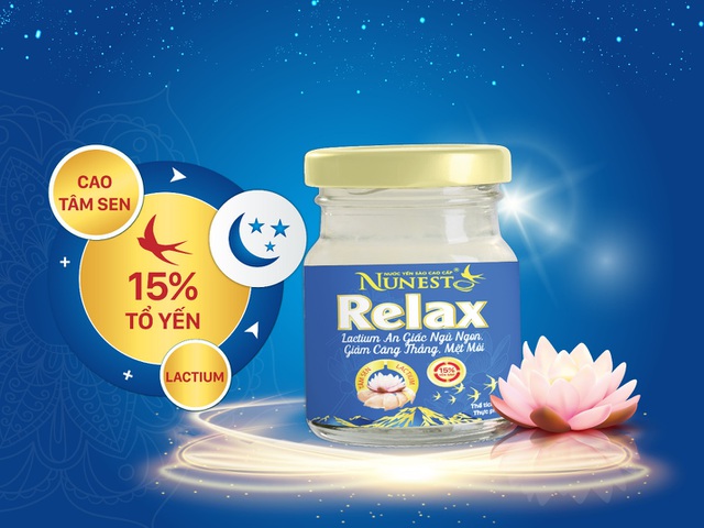 Với riêng nước yến Nunest Relax, bên cạnh yến sào tinh khiết các nhà khoa học đã bổ sung thêm Lactium và cao tâm sen để tăng hiệu quả an thần, ngủ ngon cho sản phẩm. Cụ thể, Lactium là dưỡng chất tự nhiên, an toàn, không gây phụ thuộc đã được cấp bằng sáng chế và nghiên cứu lâm sàng giúp: Giảm stress, căng thẳng, áp lực; Giúp thư giãn, tăng chất lượng và hiệu quả giấc ngủ. Công dụng an dịu thần kinh, ngủ sâu giấc của cao tâm sen cũng đã được ghi nhận công dụng tuyệt vời trong cuốn “Những Cây thuốc và vị thuốc Việt Nam” của GS.TS Đỗ Tất Lợi.