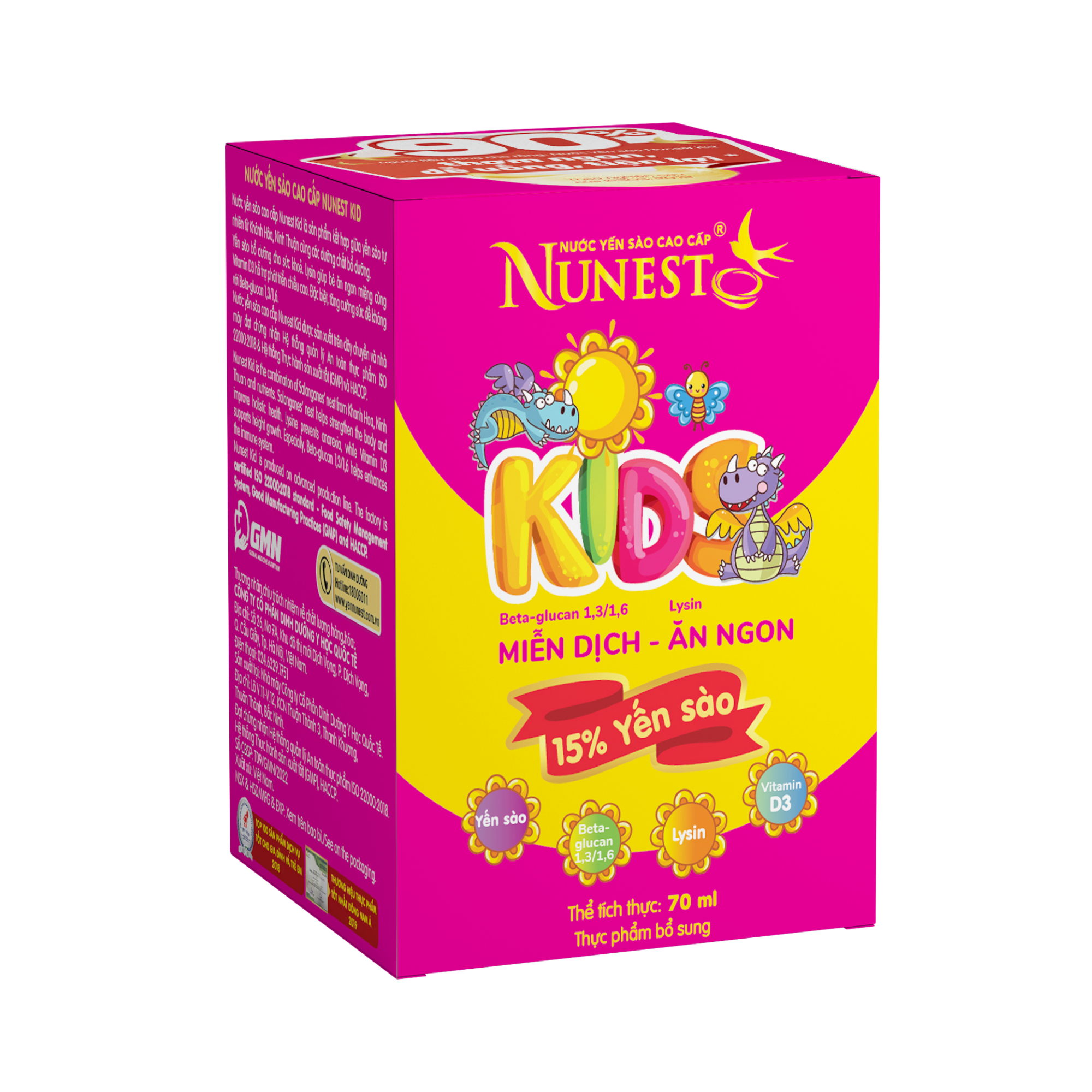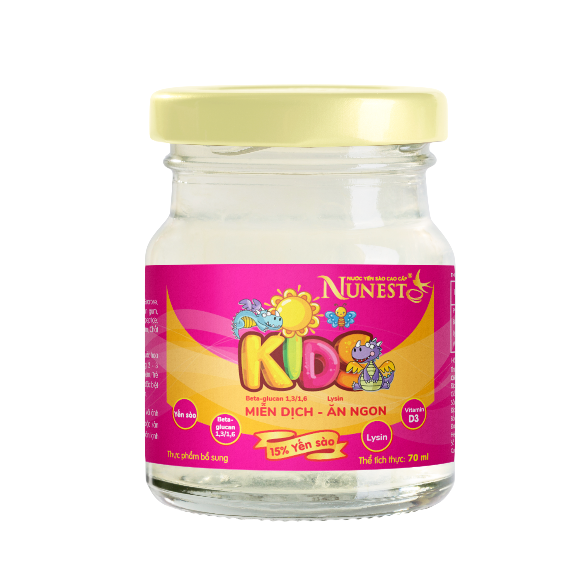 Nước yến sào cao cấp Nunest Kid là sản phẩm kết hợp giữa yến sào tự nhiên từ Khánh Hoà, Ninh Thuận cùng các dưỡng chất bổ dưỡng. Yến sào bổ dưỡng cho sức khoẻ. Lysin giúp bé ăn ngon miệng cùng vitamin D3 hỗ trợ phát triển chiều cao. Đặc biệt, tăng cường sức đề kháng với Beta-glucan 1,3/1,6.