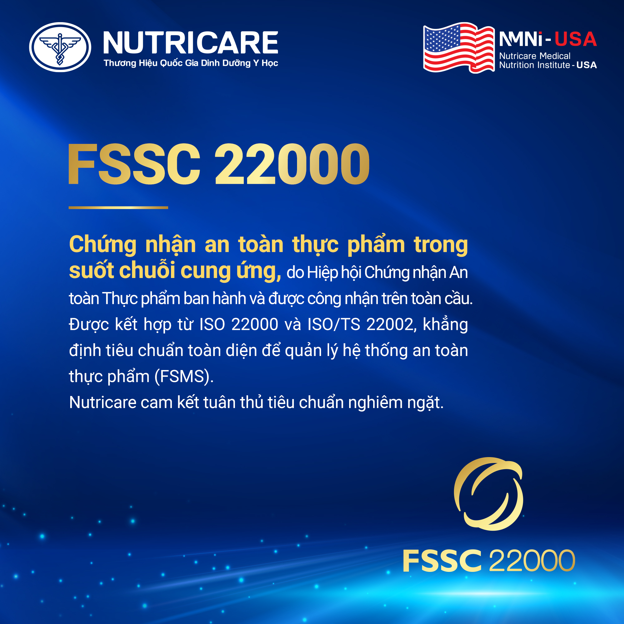 Đối với ngành hàng sản xuất và chế biến thực phẩm, một số thị trường khó tính như Nhật Bản, châu Âu yêu cầu bắt buộc doanh nghiệp phải có chứng nhận FSSC 22000 và đây cũng chính là yếu tố khẳng định mạnh mẽ hơn nữa chất lượng của những giải pháp dinh dưỡng mà Nutricare cung cấp trên thị trường.