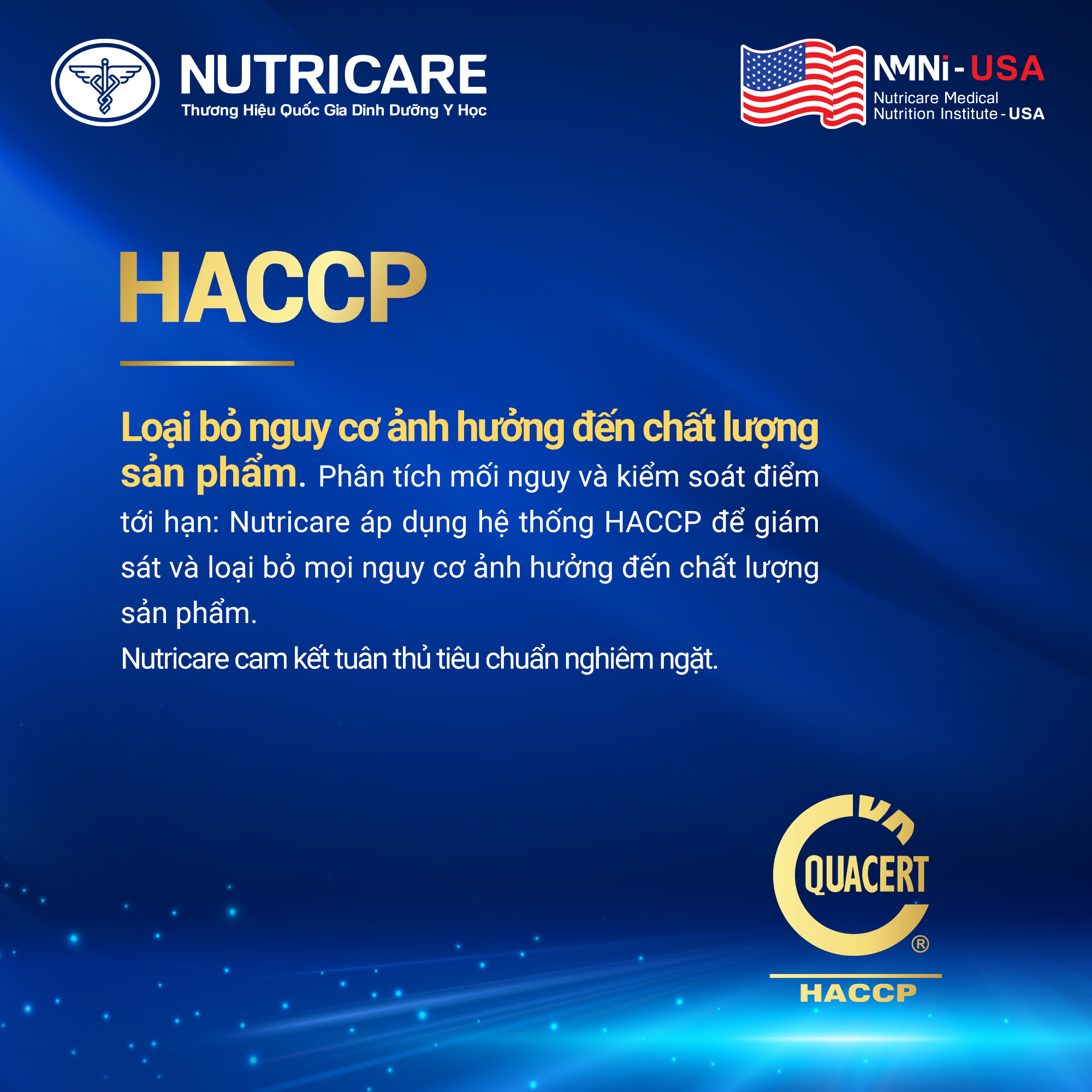 Với hệ thống tiêu chuẩn toàn diện và cam kết thực thi nghiêm ngặt, Nutricare khẳng định vị thế Thương hiệu Quốc gia Dinh dưỡng Y học, đạt chuẩn về chất lượng, an toàn và minh bạch trong sản xuất. Điều này giúp người tiêu dùng an tâm sử dụng sản phẩm, chăm sóc sức khỏe cho người thân và gia đình.