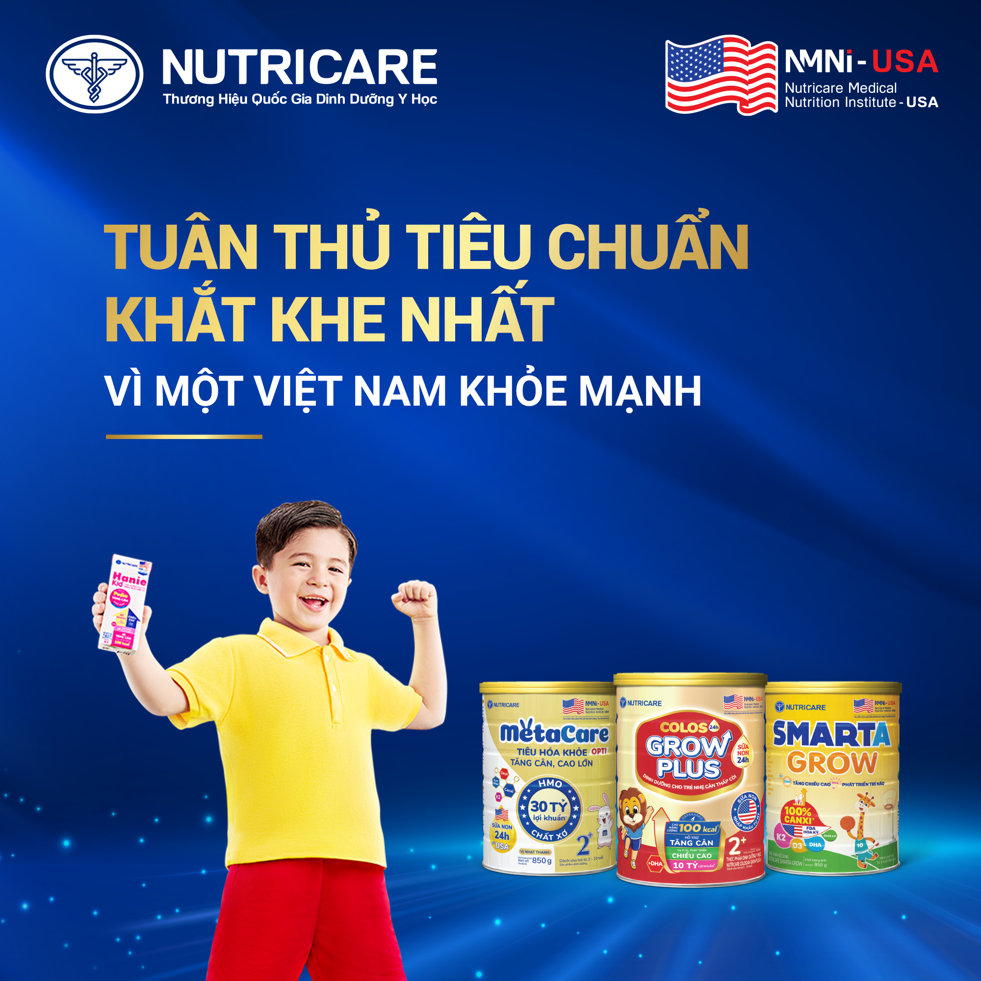 Sau quá trình hợp tác, các dòng sản phẩm cho trẻ em được nghiên cứu và phát triển bởi Nutricare và NMNI-USA đã đạt Thương hiệu quốc gia Việt Nam 2024 như: Metacare, Smarta Grow và Hanie Kid.