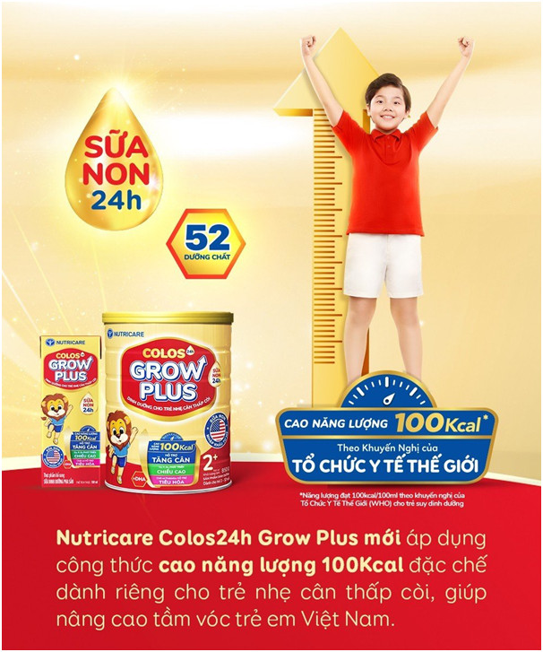 Thấu hiểu những thách thức dinh dưỡng của trẻ em suy dinh dưỡng nhẹ cân thấp còi tại Việt Nam, công ty Nutricare đã cho ra đời Nutricare Colos24h Grow Plus mới. Sản phẩm là giải pháp cho trẻ suy dinh dưỡng nhẹ cân thấp còi theo khuyến nghị của Tổ chức Y tế Thế giới.