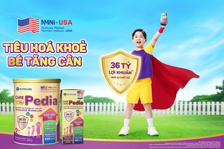 Nutricare ứng dụng công nghệ lợi khuẩn Postbiotic trong Care 100 Pedia hỗ trợ tiêu hoá khoẻ, bé tăng cân