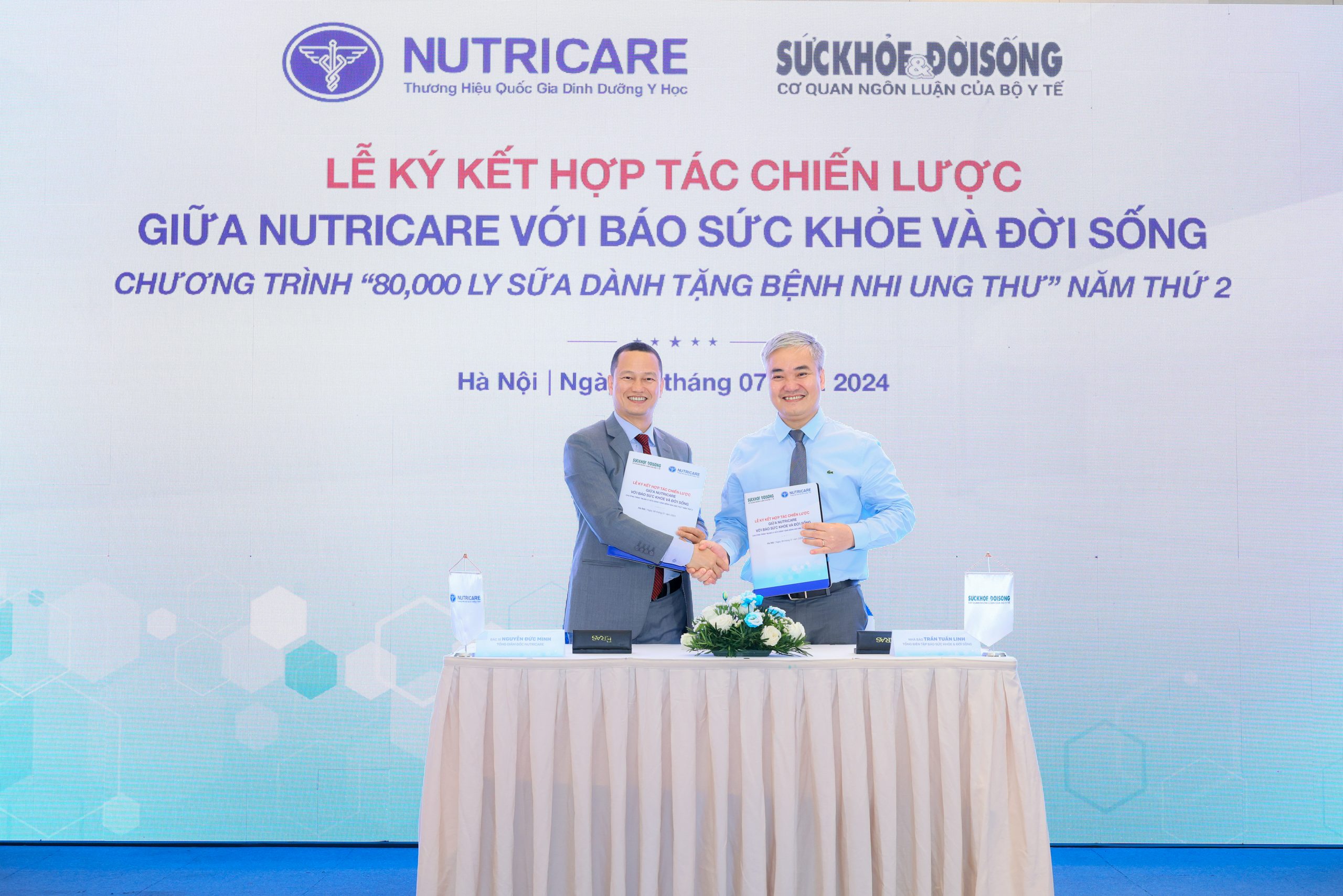 giadinh.suckhoedoisong.vn – Ngày 8/7, tại Lễ công bố thành tựu hợp tác nghiên cứu và phát triển sản phẩm Dinh dưỡng Y học của Công ty Nutricare và Viện Dinh dưỡng Y học Nutricare Hoa Kỳ (NMNI-USA), Nutricare cùng Báo Sức khỏe và Đời sống đã công bố tiếp tục chương trình hợp tác chiến lược 80.000 ly sữa dinh dưỡng dành tặng bệnh nhi ung thư năm thứ 2.