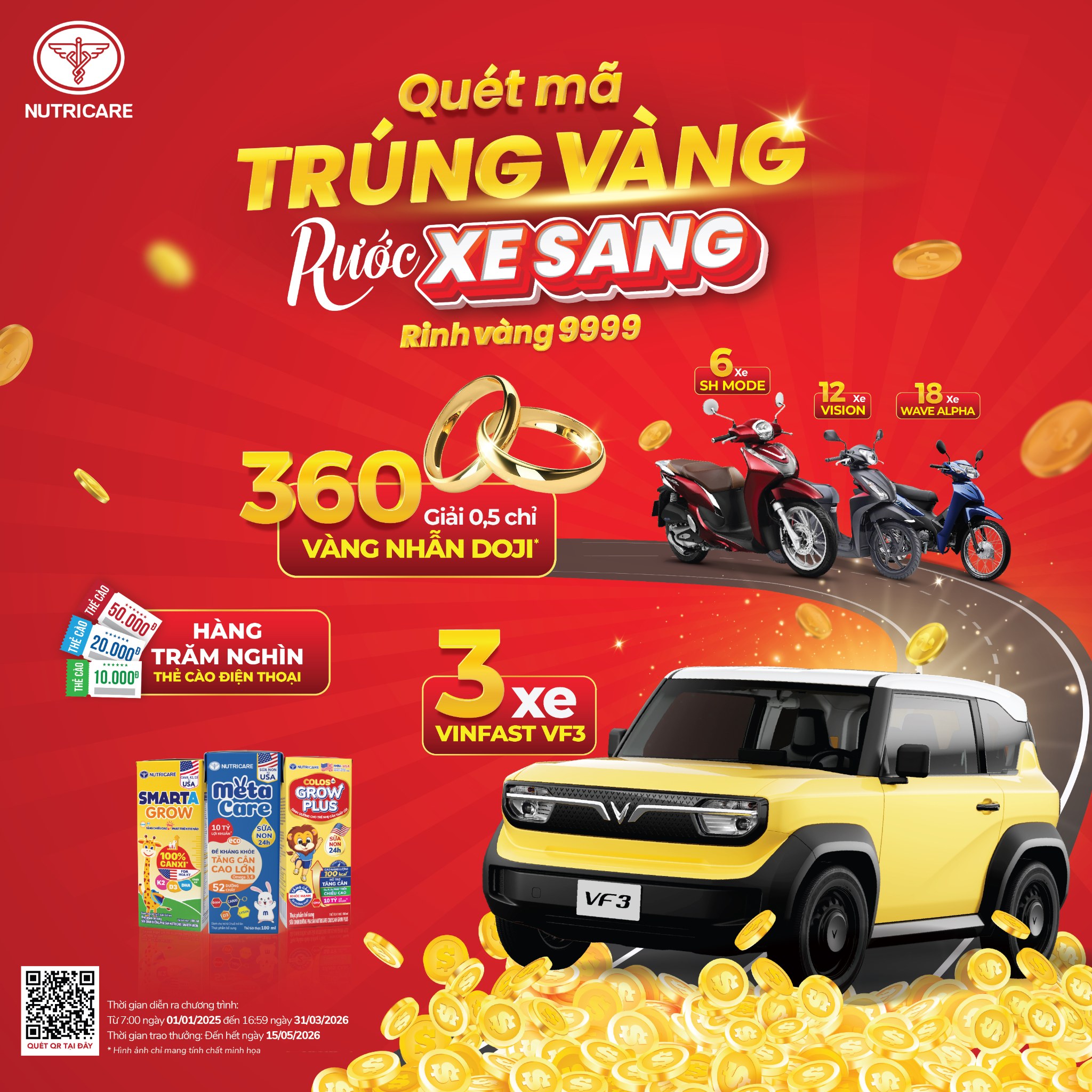 Quét mã QR, rinh ngàn quà tặng với chương trình khuyến mại QUÉT MÃ TRÚNG VÀNG – RƯỚC XE SANG, RINH VÀNG 9999. Khi mua sữa Smarta Grow, Metacare, Nutricare Colos24h Grow Plus pha sẵn tiện lợi, khách hàng sẽ trúng ngay 100% các giải thưởng có giá trị. Thời gian tham gia chương trình: […]