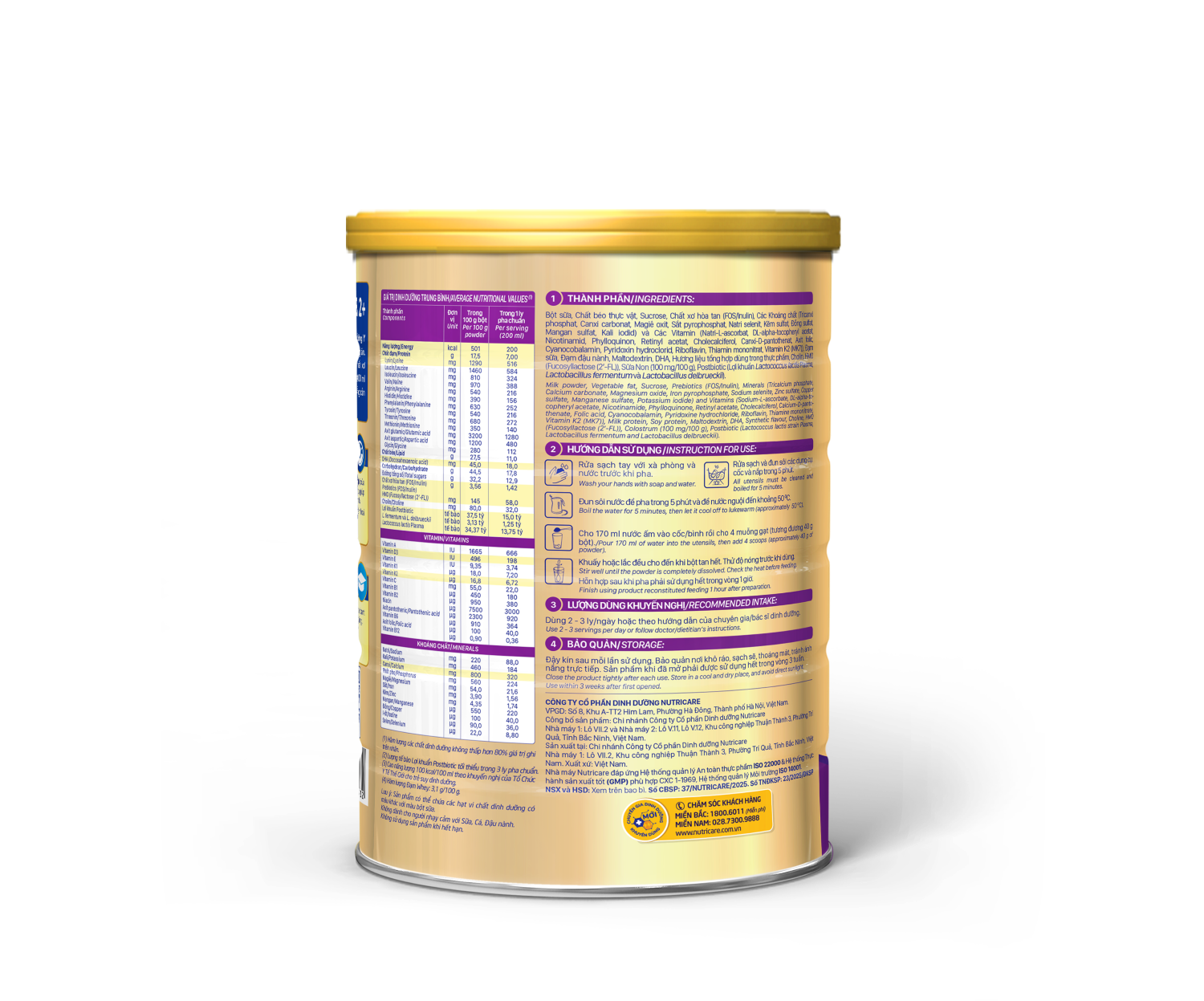 36 tỷ Lợi khuẩn(*) ức chế sự phát triển của vi khuẩn có hại, tăng cường hệ miễn dịch tự nhiên cùng HMO giúp giảm tình trạng nhiễm khuẩn và Chất xơ (FOS/Inulin) giúp tiêu hoá khoẻ ngăn ngừa táo bón, hỗ trợ cân bằng hệ vi sinh đường ruột.
