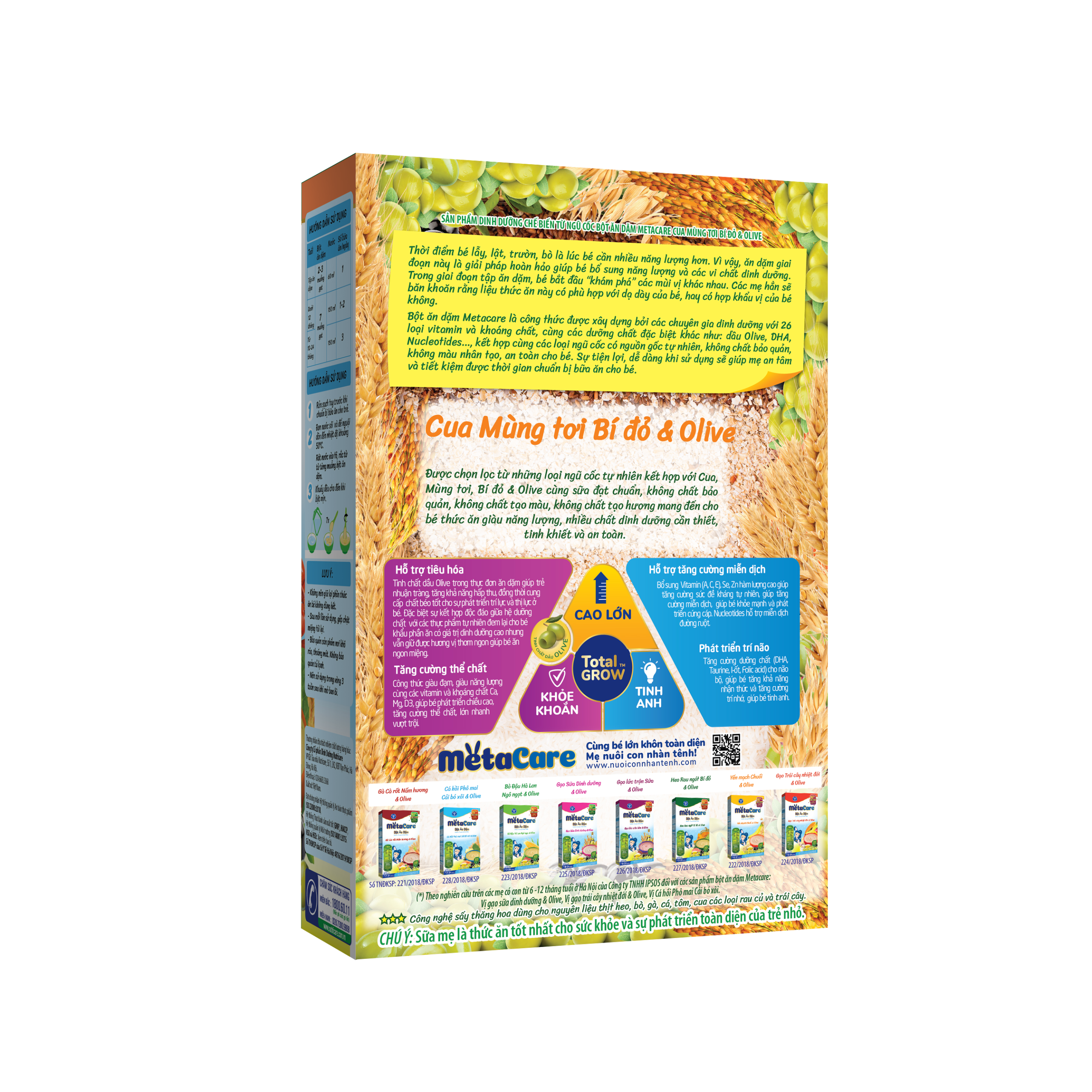 Sản phẩm dinh dưỡng chế biến từ ngũ cốc bột ăn dặm Metacare Cua mùng tơi bí đỏ & Olive