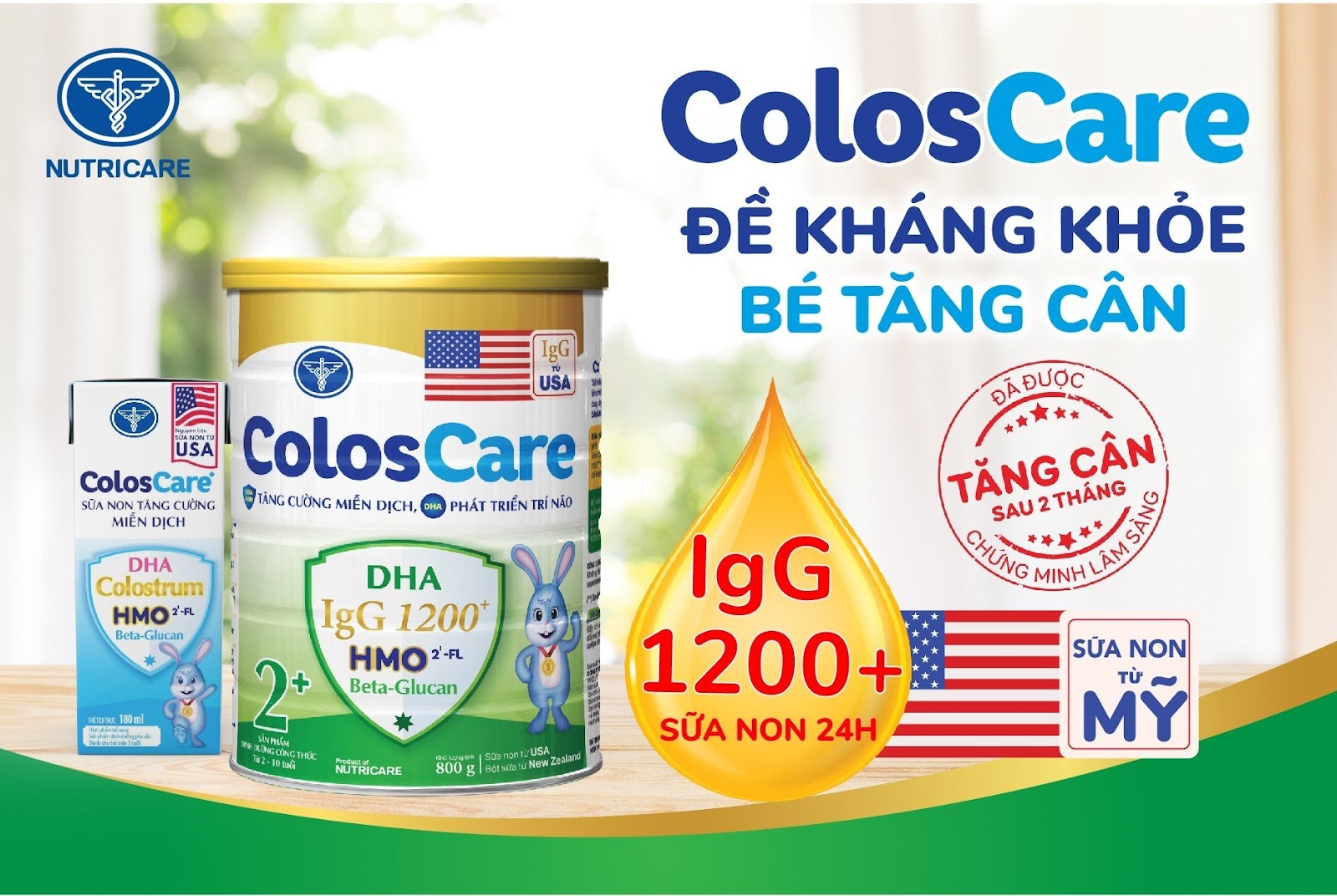Được nghiên cứu và phát triển bởi công ty Cổ phần Dinh dưỡng Nutricare – đơn vị đạt Thương hiệu quốc gia Dinh dưỡng Y học 6 năm liên tiếp từ 2018, sản phẩm dinh dưỡng công thức ColosCare 2+ hỗ trợ tăng cường đề kháng, cải thiện cân nặng, xua tan nỗi lo ốm vặt, chậm tăng cân ở trẻ.