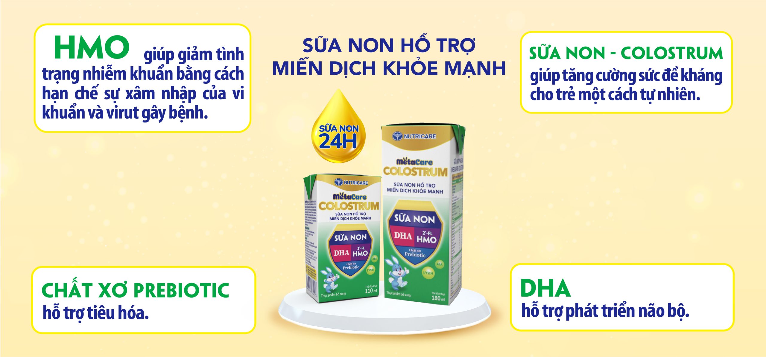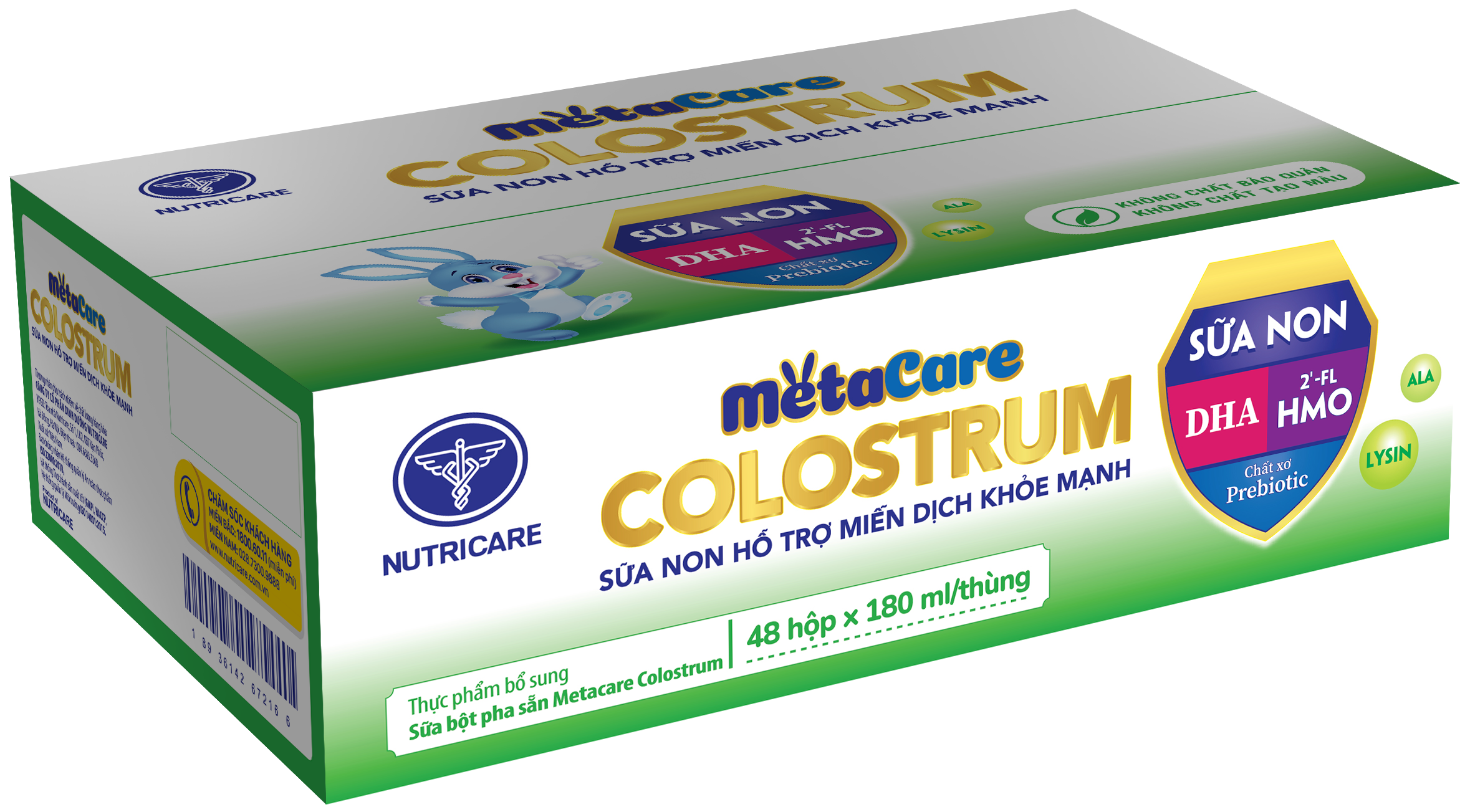 Metacare Colostrum với Chất xơ prebiotic giúp tiêu hóa khỏe, DHA hỗ trợ não bộ, Lysin cho bé ăn ngon tăng cân và Sữa non Colostrum cùng HMO tăng cường đề kháng, giúp trẻ phát triển toàn diện cả trí tuệ lẫn thể chất.