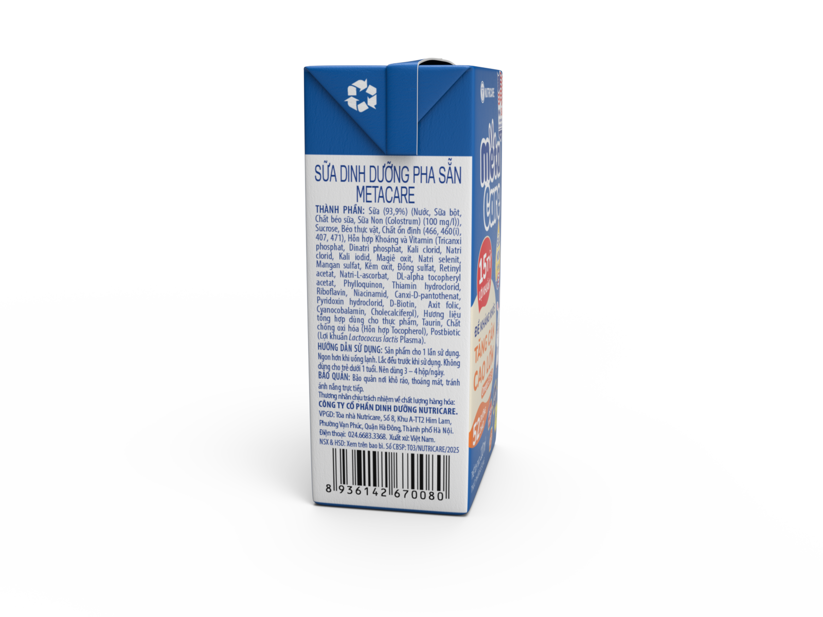 (**) 3 hộp Metacare 180 ml đáp ứng 100% nhu cầu Canxi theo khuyến nghị của Tổ chức Y tế Thế giới (WHO) cho trẻ từ 1 – 6 tuổi.