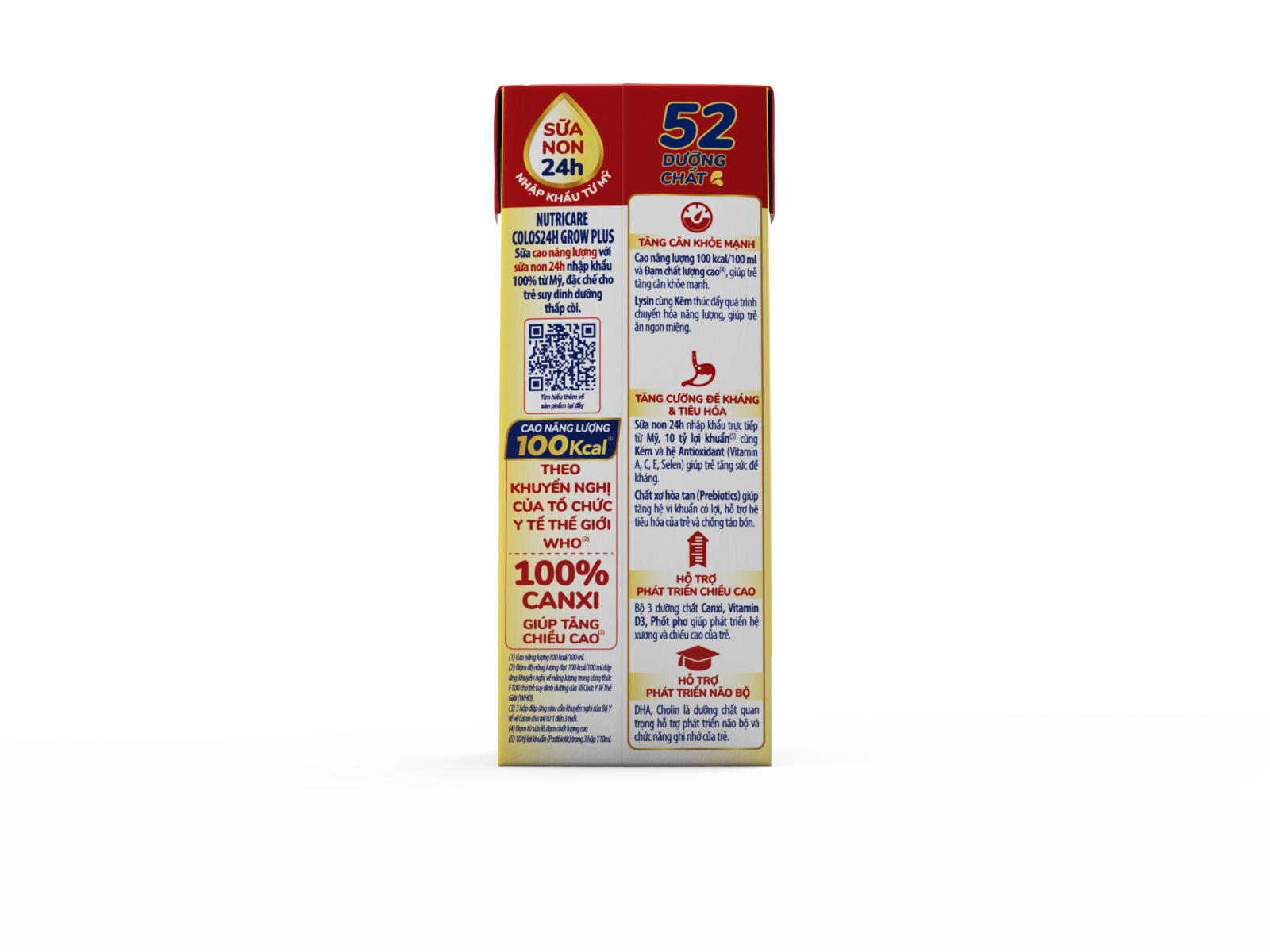 Cao năng lượng 100 kcal/100 ml và Đạm chất lượng cao(4) giúp trẻ tăng cân khỏe mạnh.