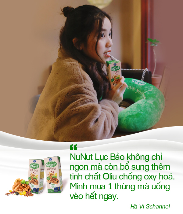 Giống như cô giáo Vật lý xinh đẹp, cô nàng YouTuber Trịnh Hà Vi của kênh SChannel cũng không thể từ chối trước hương vị thơm ngon từ NuNut 6 loại hạt.