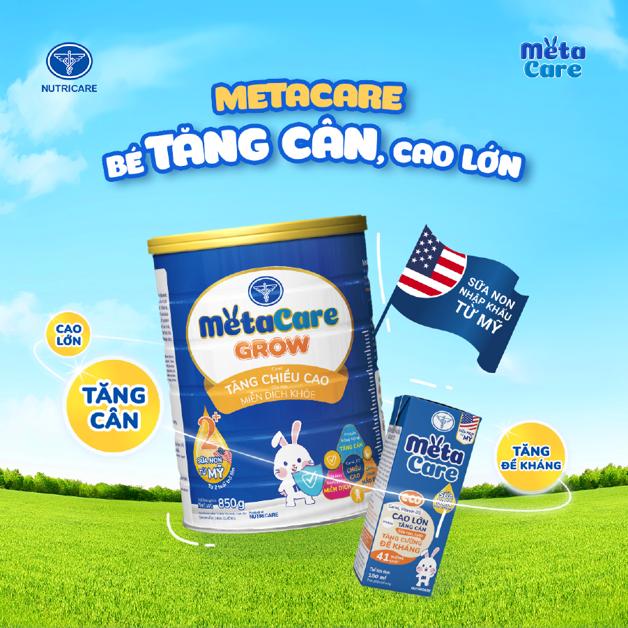 Là dòng sữa được nhiều bà mẹ Việt tin dùng trong hành trình nuôi con, sữa bột và sữa pha sẵn Metacare nay với những cải tiến vượt trội mang đến thêm nhiều giải pháp mới cho mong muốn bé yêu tăng cân, cao lớn mỗi ngày của mẹ.