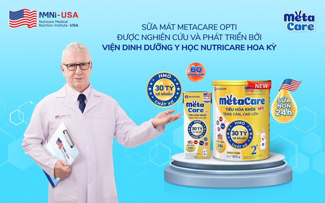 Ông Nguyễn Đức Minh – Tổng giám đốc công ty Nutricare cho biết, sữa mát Metacare Opti được nghiên cứu và phát triển bởi các nhà khoa học của Nutricare và Viện Dinh dưỡng Y học Nutricare Hoa Kỳ. Sản phẩm sở hữu đột phá công nghệ lợi khuẩn Postbiotic, bổ sung 30 tỷ lợi khuẩn Postbiotic (hệ lợi khuẩn Postbiotic LBiome và Postbiotic L. Lactis) ức chế sự phát triển của vi khuẩn có hại, tăng cường hệ miễn dịch tự nhiên, cùng HMO và chất xơ hỗ trợ hệ tiêu hóa khỏe mạnh, ngăn ngừa các nguy cơ táo bón và hỗ trợ cân bằng hệ vinh sinh đường ruột. Đồng thời, sữa non 24h từ Mỹ có trong sản phẩm cũng hỗ trợ tăng cường đề kháng ở trẻ.