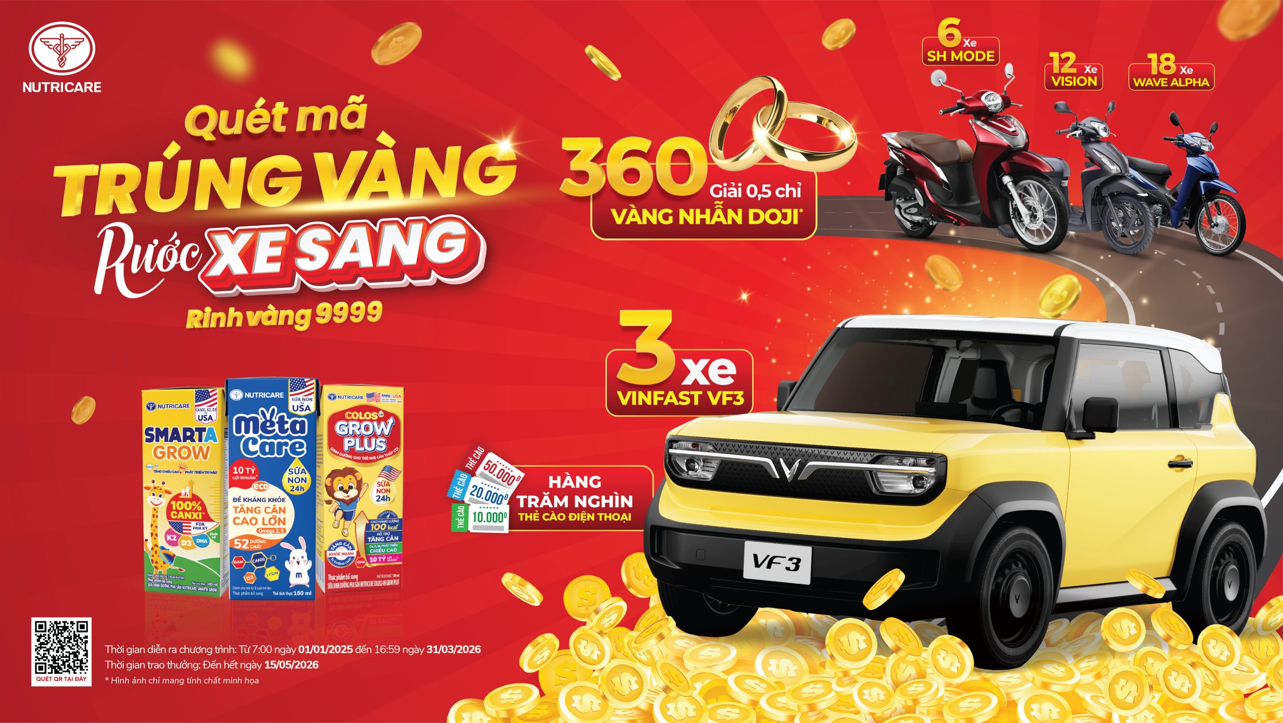 Quét mã QR, rinh ngàn quà tặng với chương trình khuyến mại QUÉT MÃ TRÚNG VÀNG – RƯỚC XE SANG, RINH VÀNG 9999. Khi mua sữa Smarta Grow, Metacare, Nutricare Colos24h Grow Plus pha sẵn tiện lợi, khách hàng sẽ trúng ngay 100% các giải thưởng có giá trị.  Thời gian tham gia chương trình: […]